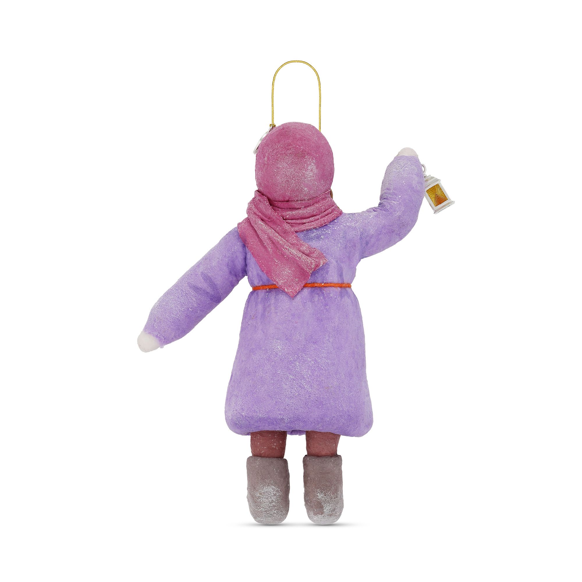 Игрушка создана по восстановленным традиционным технологиям и полностью выполнена вручную из ваты и крахмального клея. Образ дополняют изысканные элементы из серебра 925 пробы с эмалевыми вставками. Личико воспроизводит облик антикварной куклы конца XIX века. Роспись выполнена акриловыми красками, поверхность украшена деликатным слюдяным сиянием.