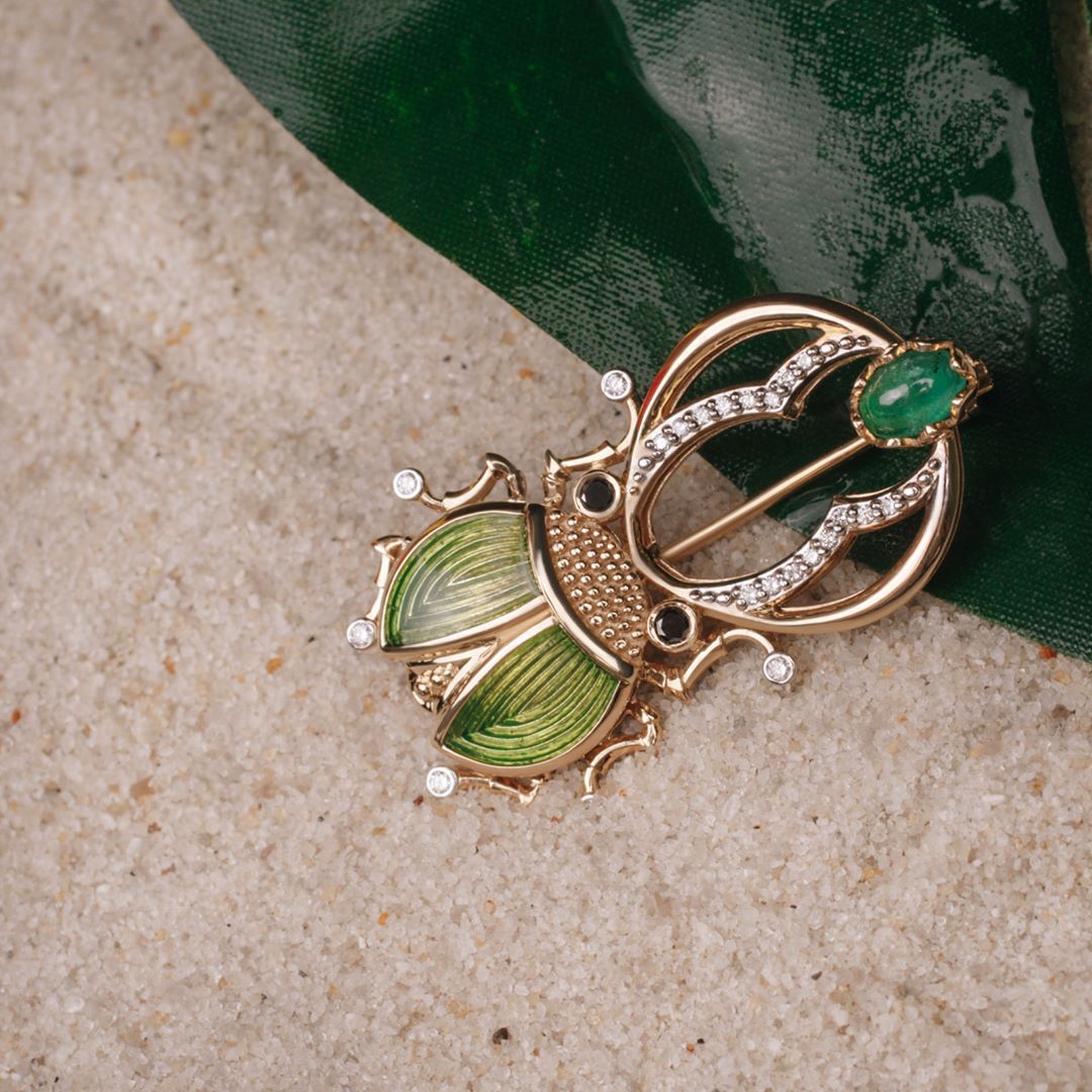 Брошь из желтого золота с изумрудом и бриллиантами