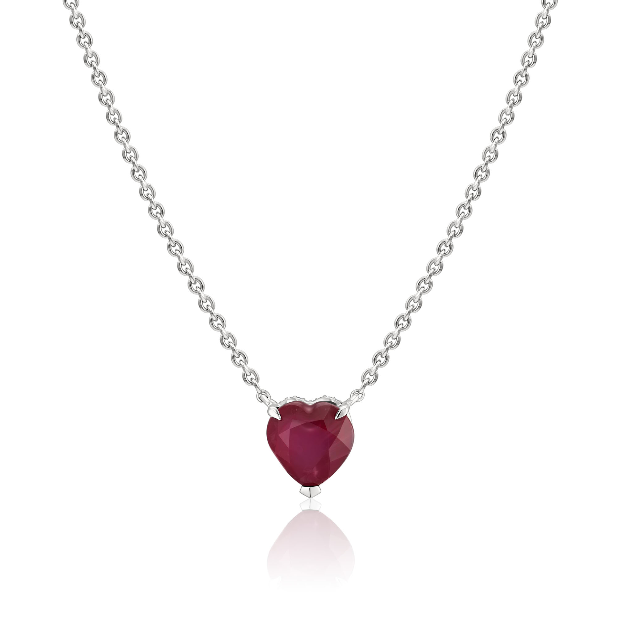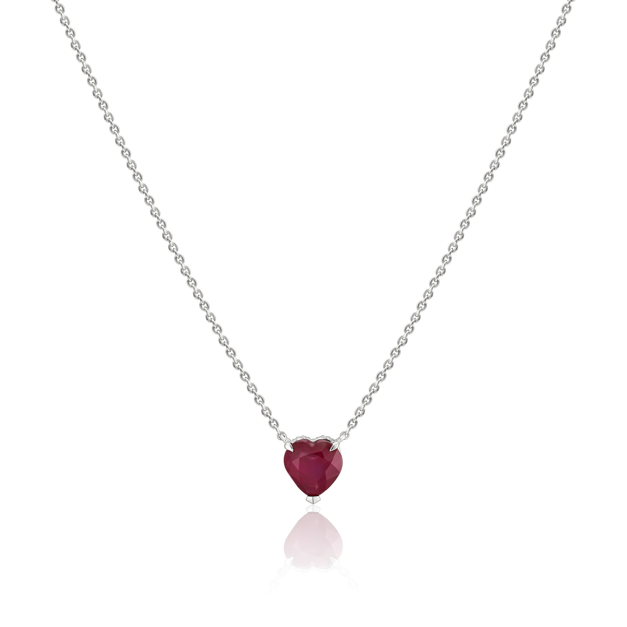 Колье «Сердце» из белого золота с рубином и бриллиантами