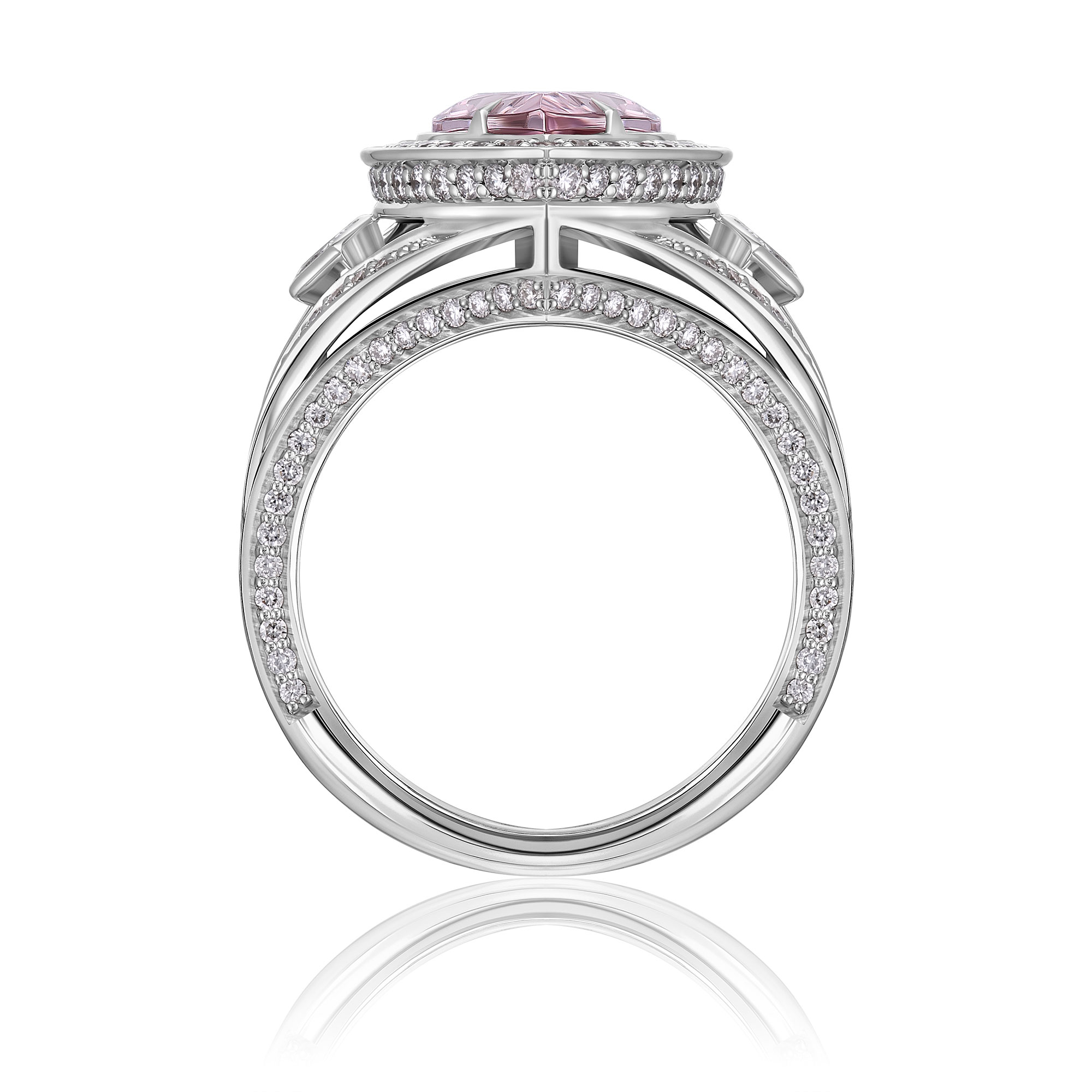 Кольцо из белого золота с бриллиантами и морганитом 2.48 ct