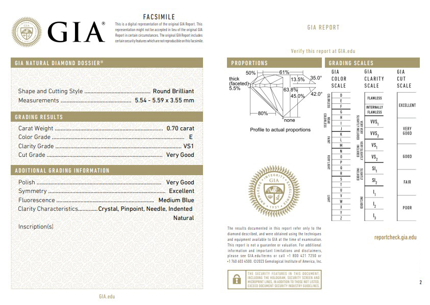 Цвет: 2 , Чистота: 5 Вес: 0.700 ct.