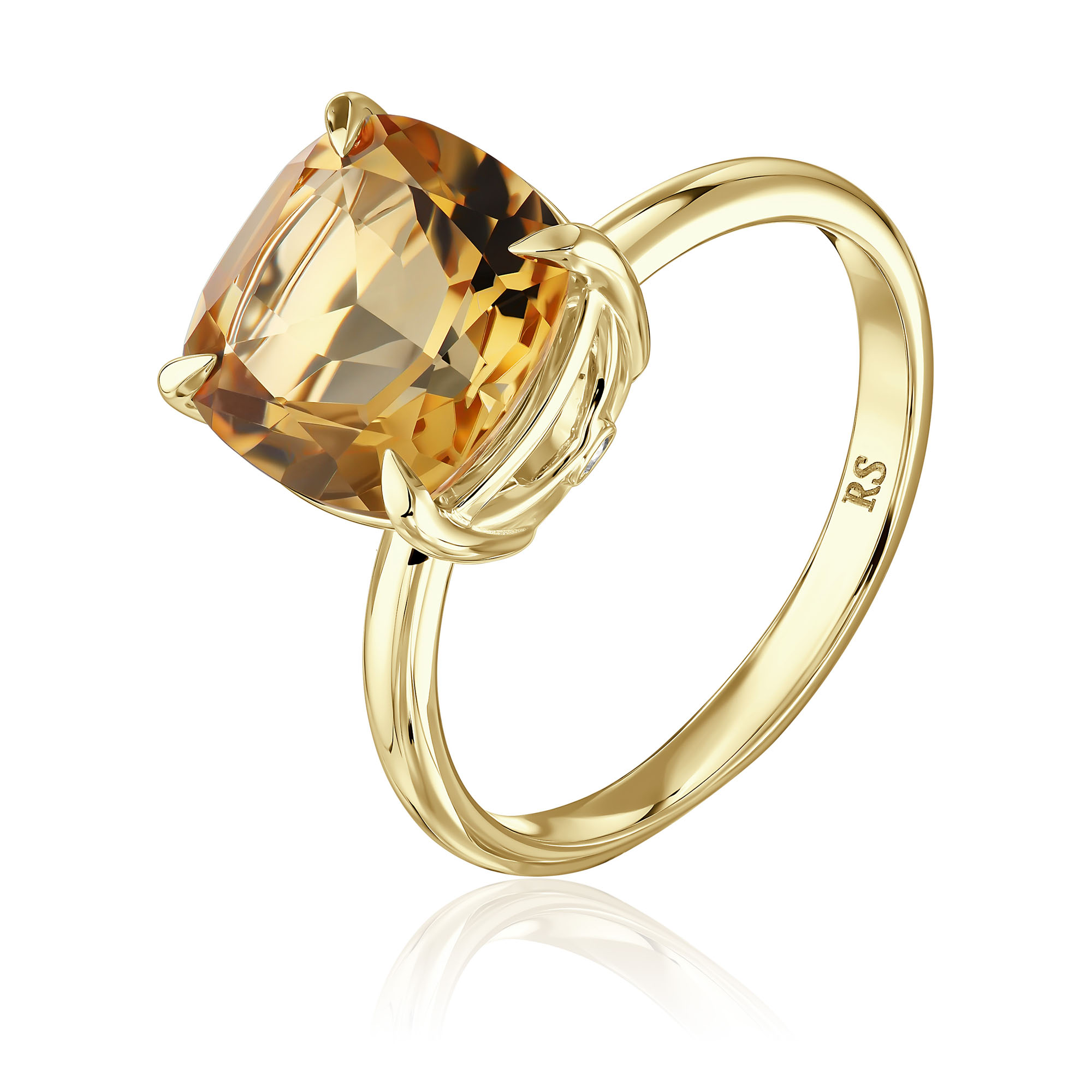 Кольцо из желтого золота с бриллиантом и цитрином