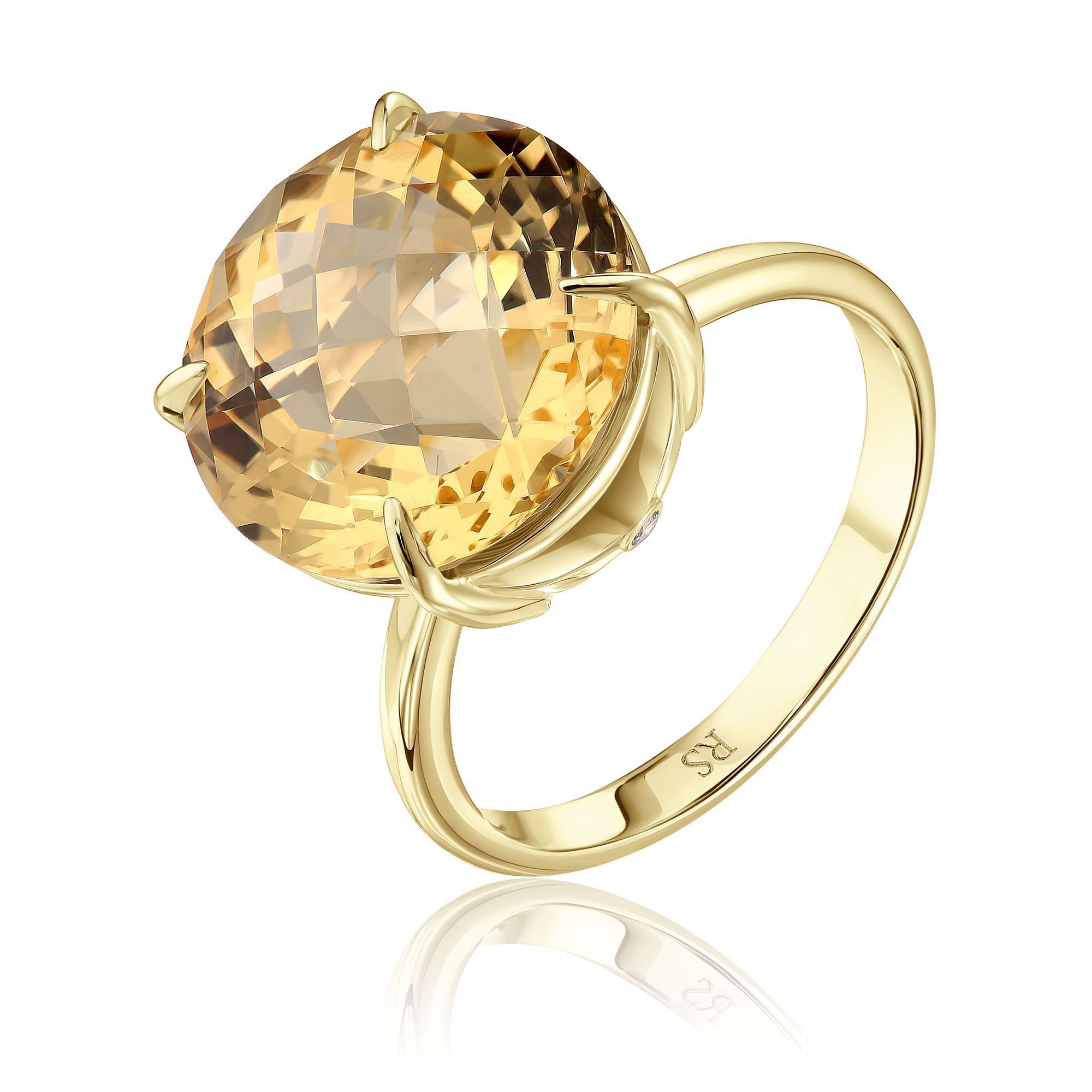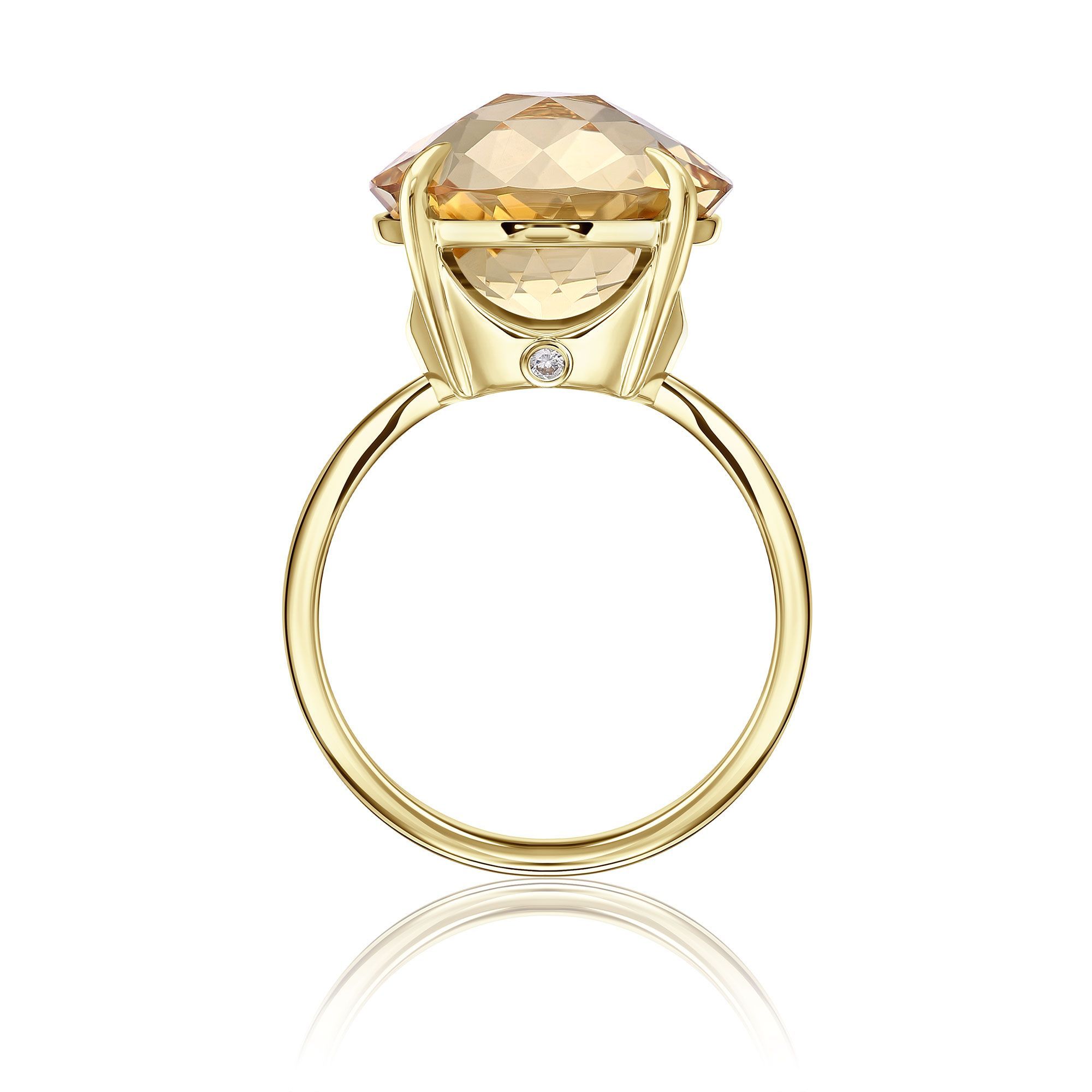 Кольцо из желтого золота с цитрином и бриллиантом