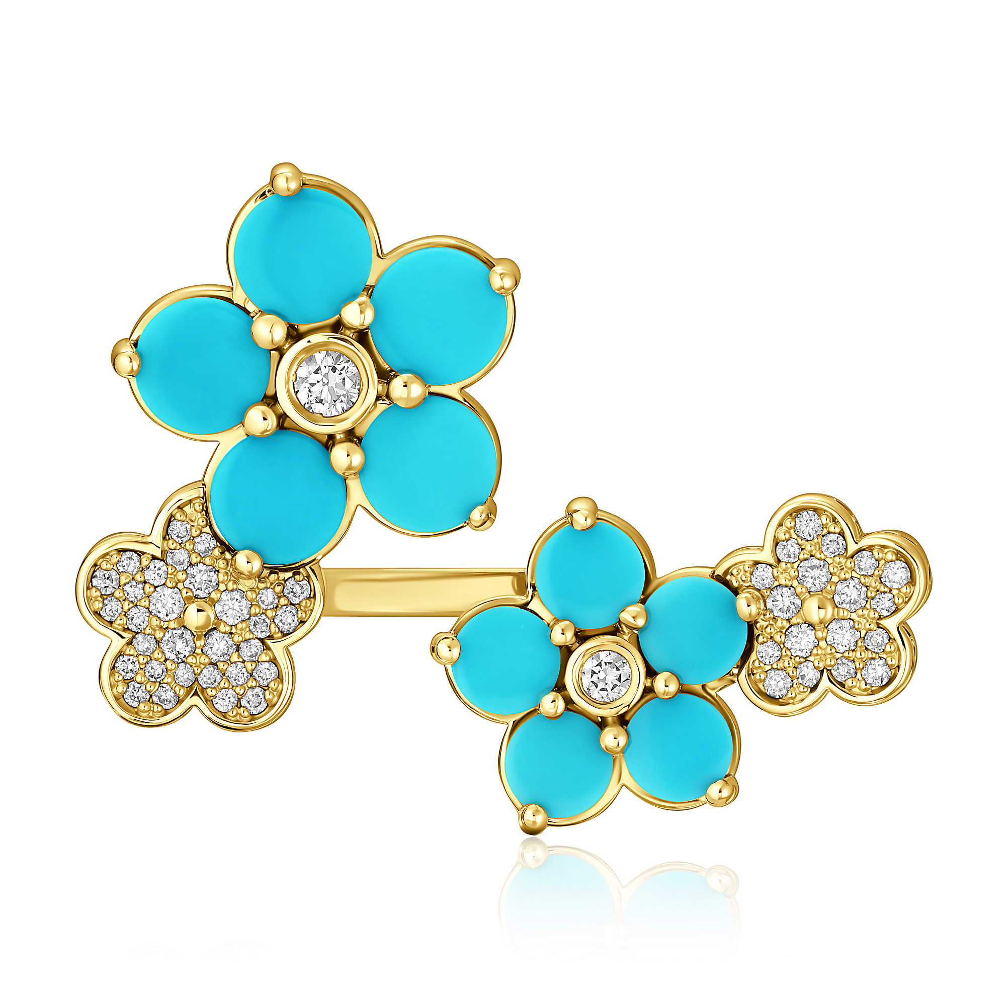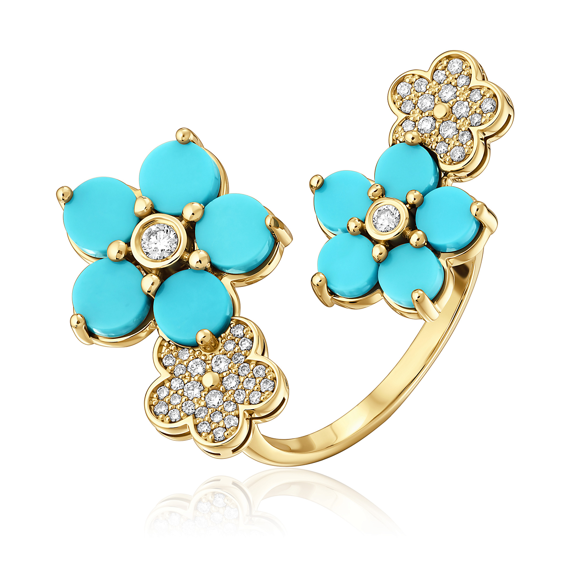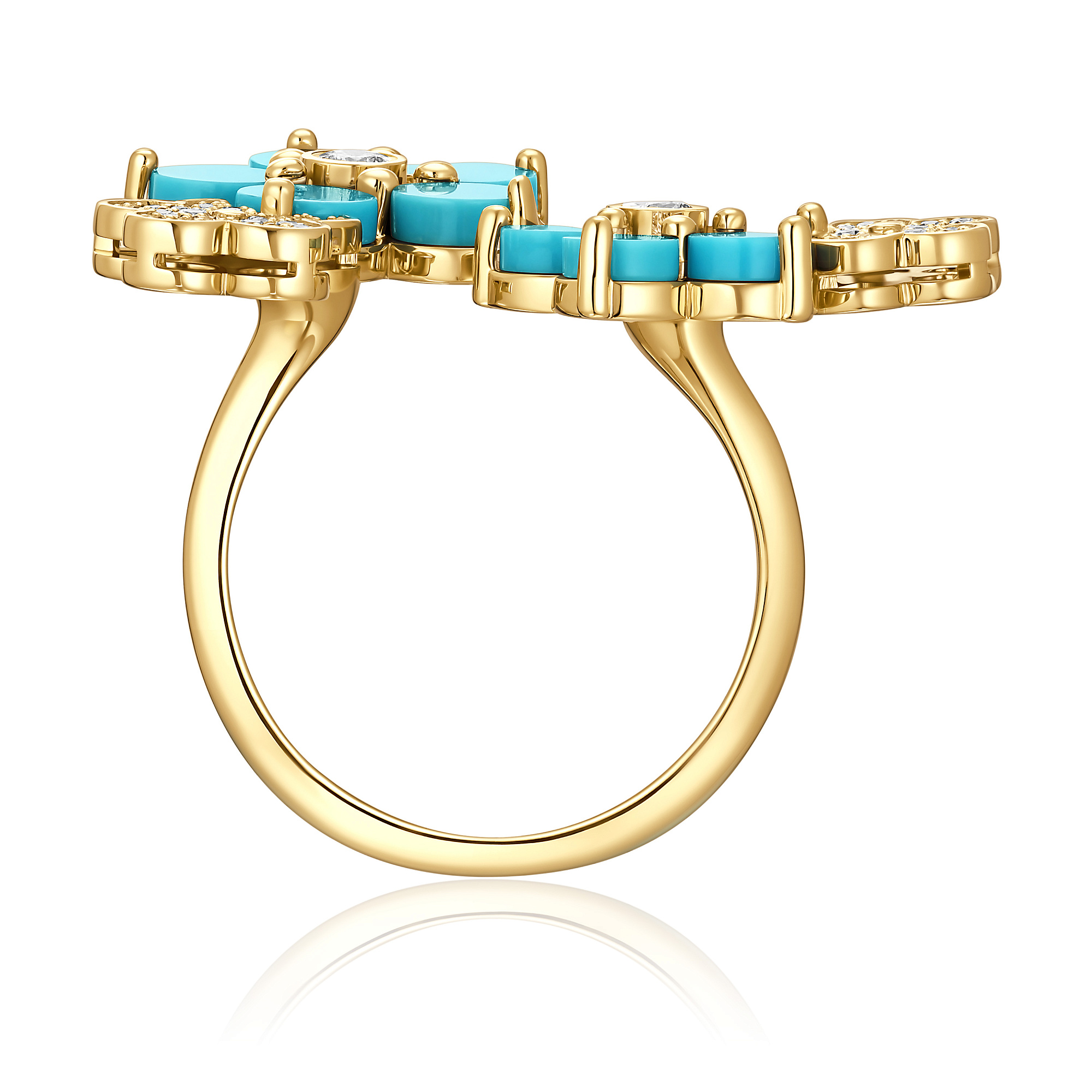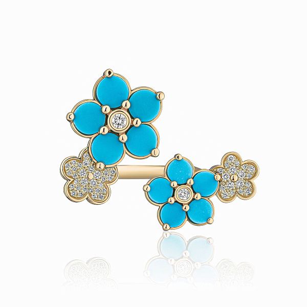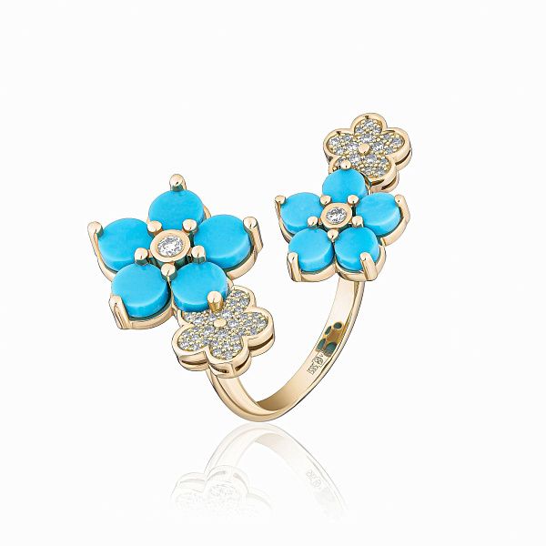 Кольцо из желтого золота с бирюзой и бриллиантами