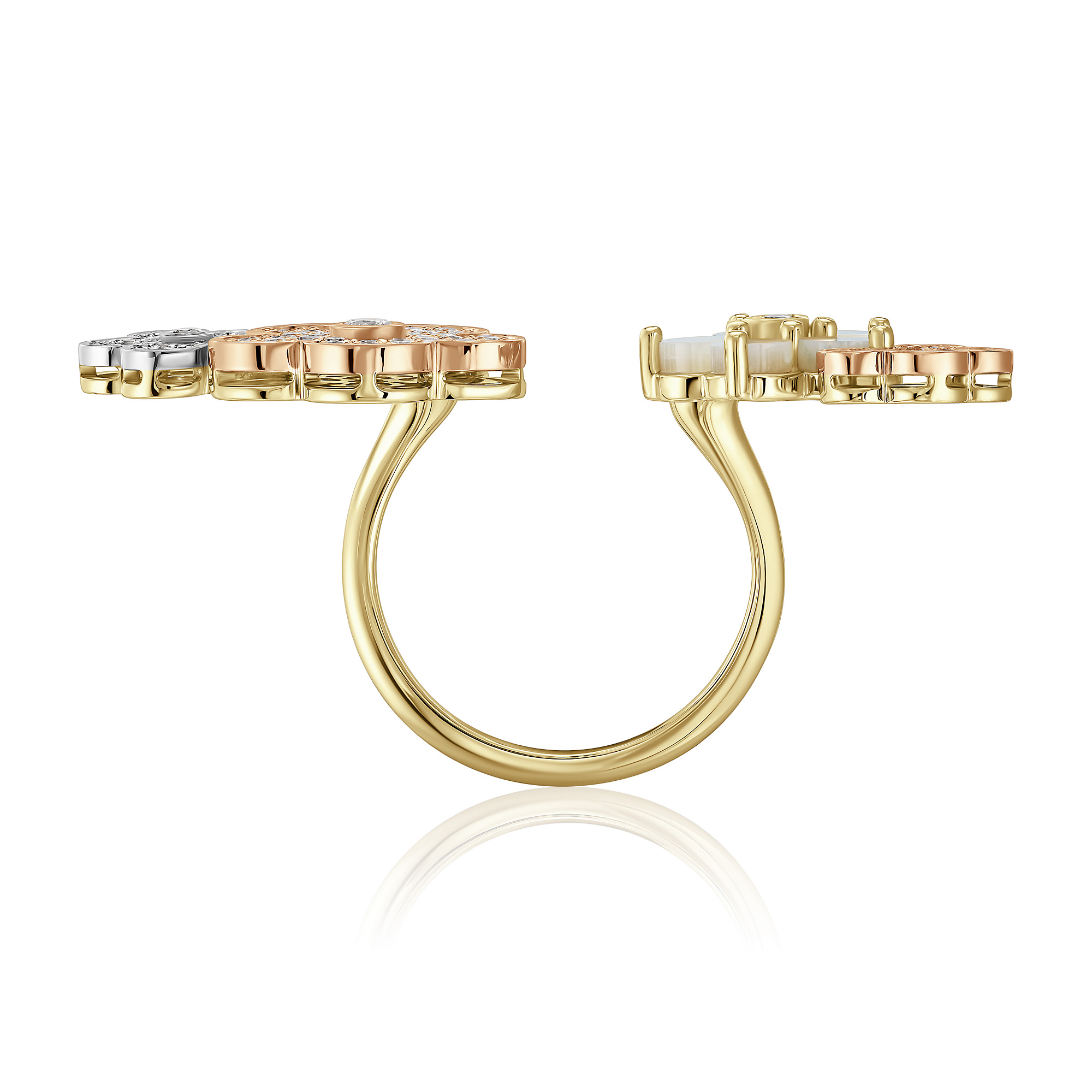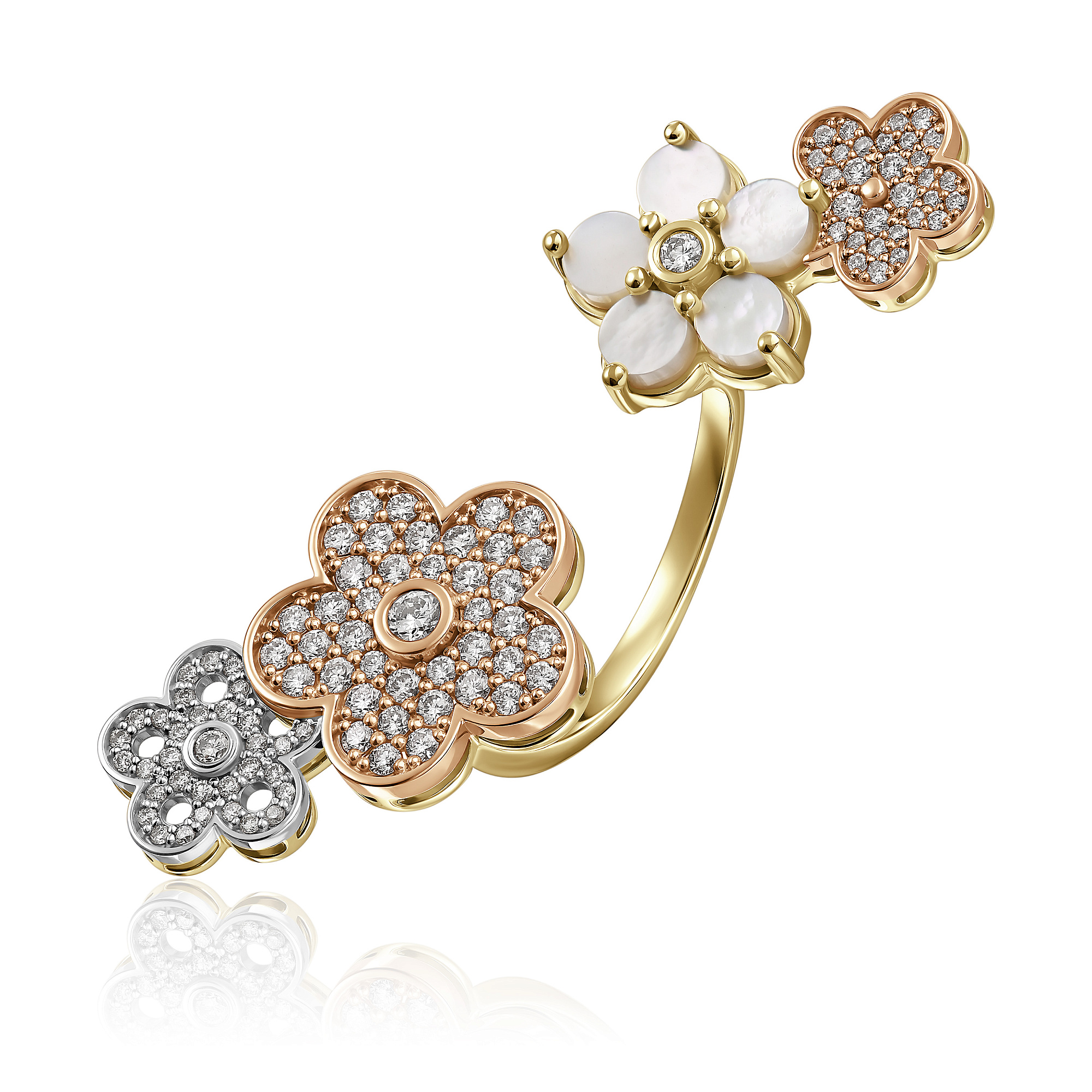 Кольцо из желтого золота с перламутром и бриллиантами