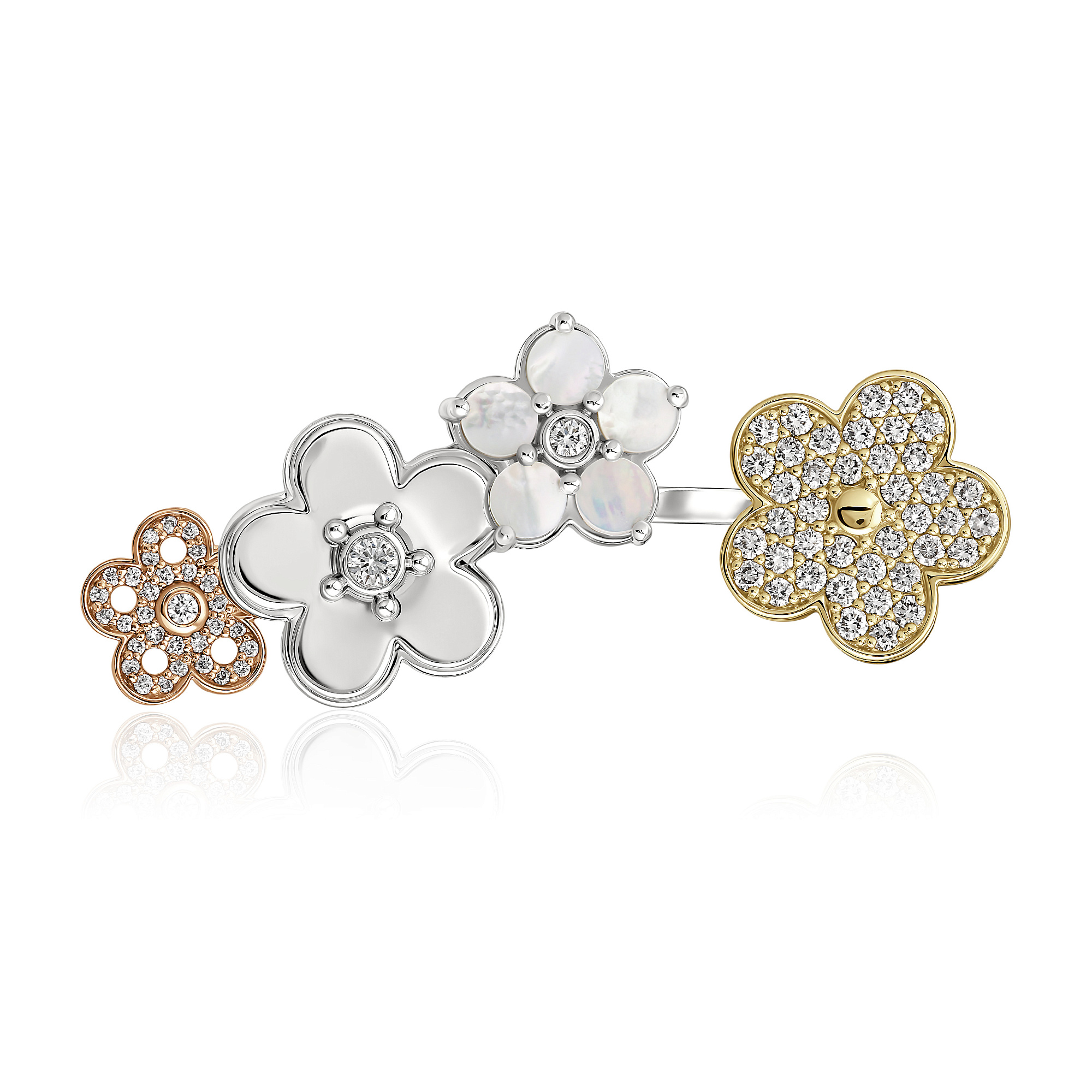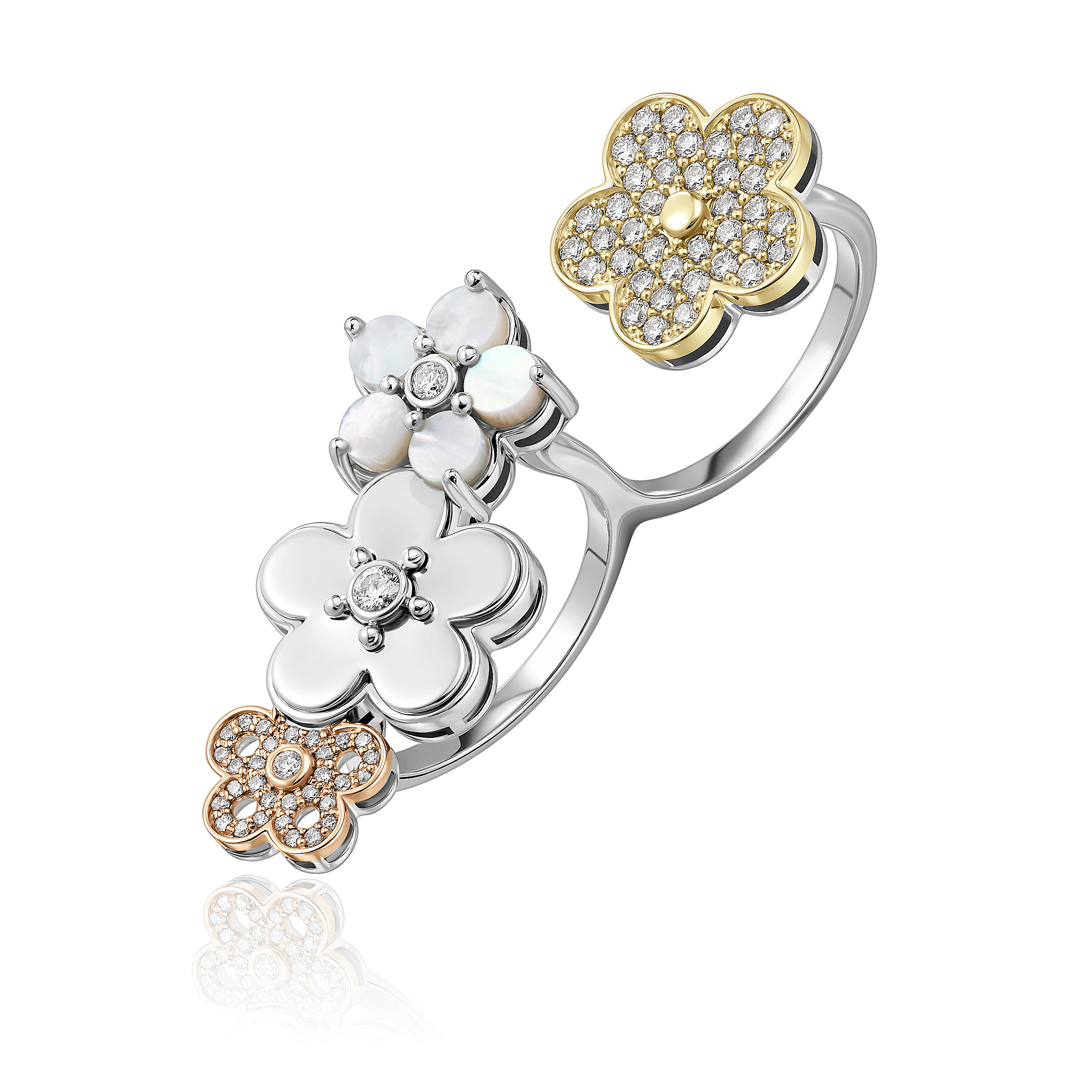 Кольцо из белого золота с перламутром и бриллиантами