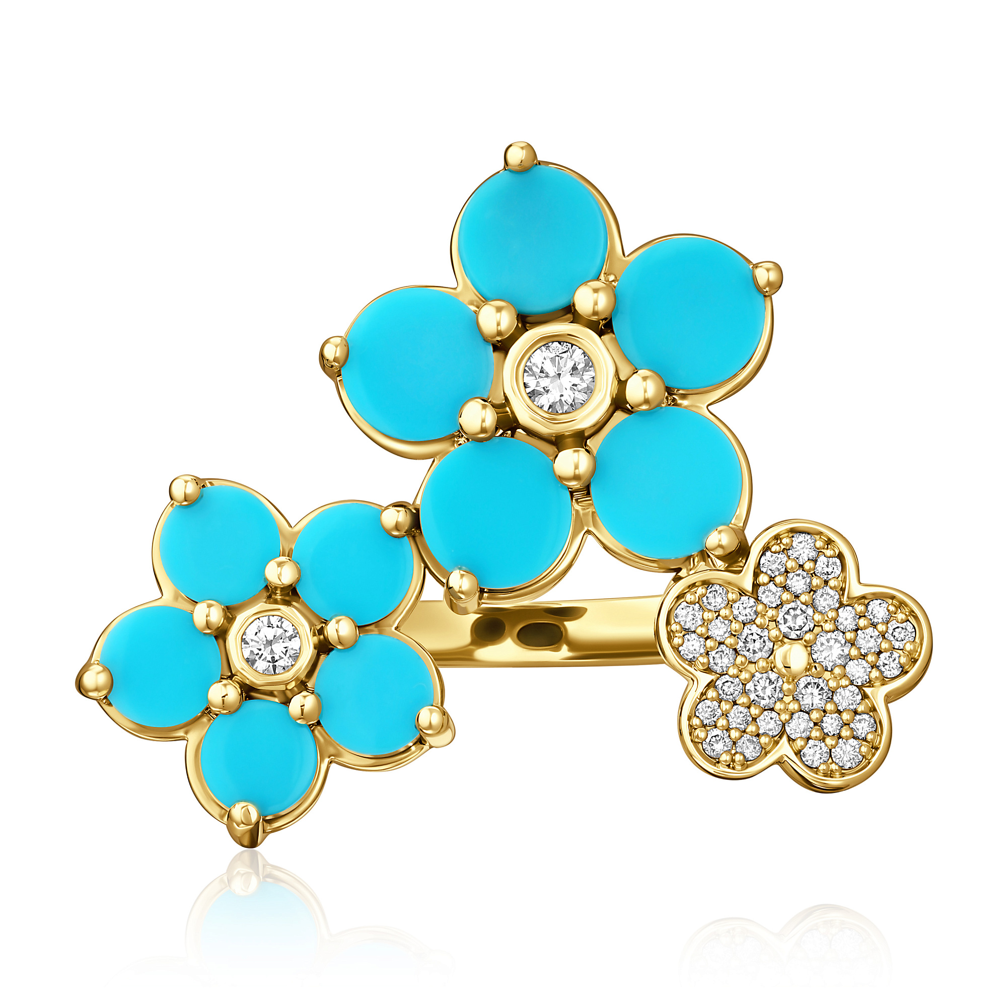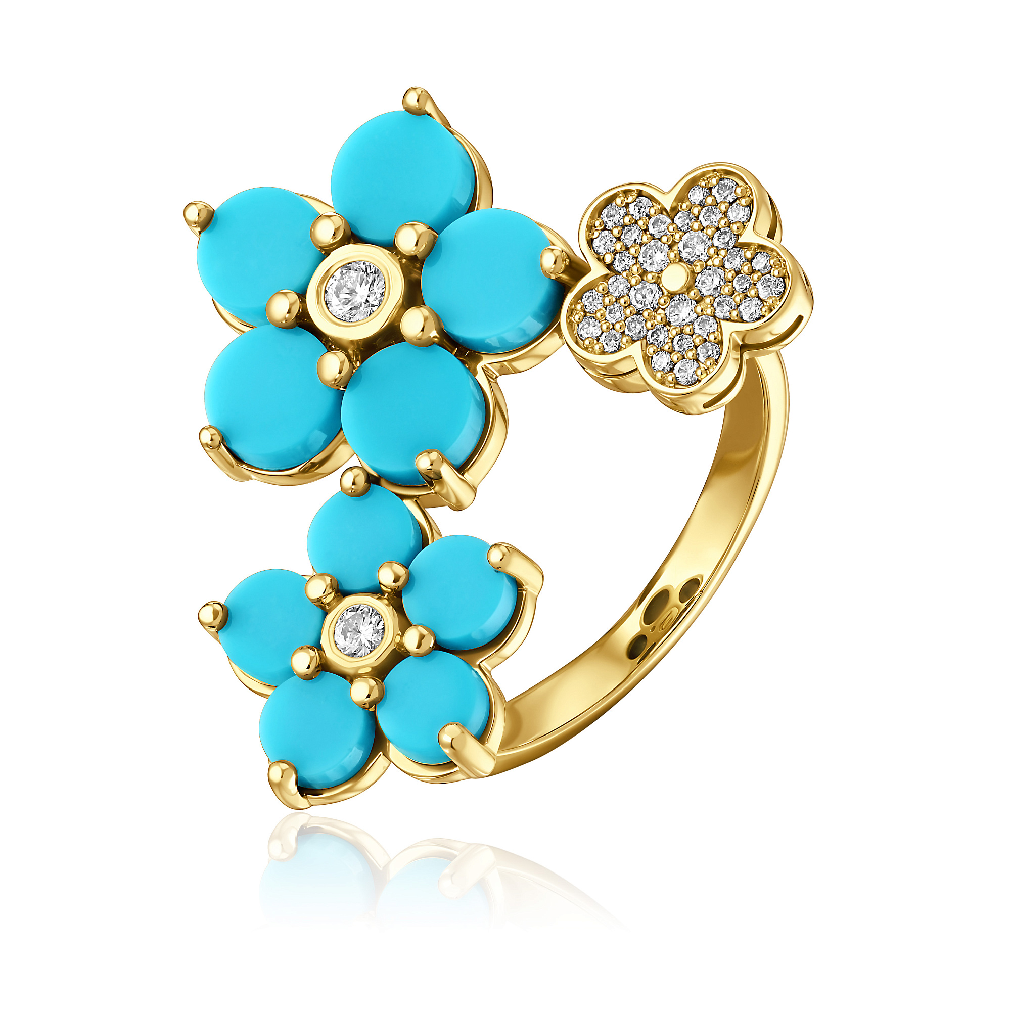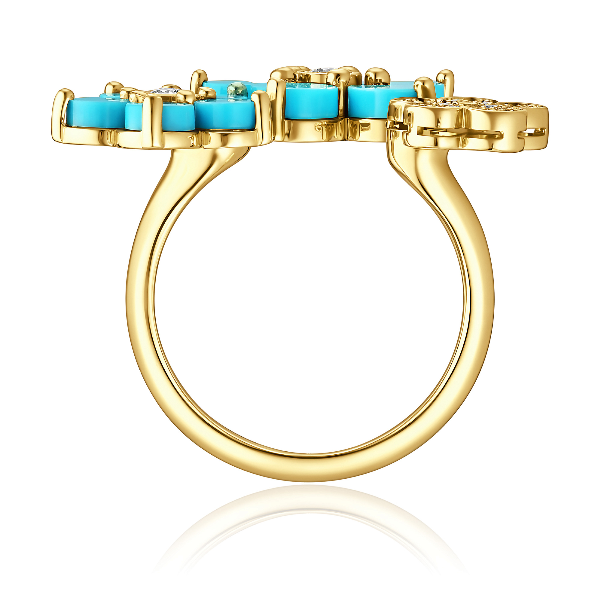Кольцо из желтого золота с бирюзой и бриллиантами
