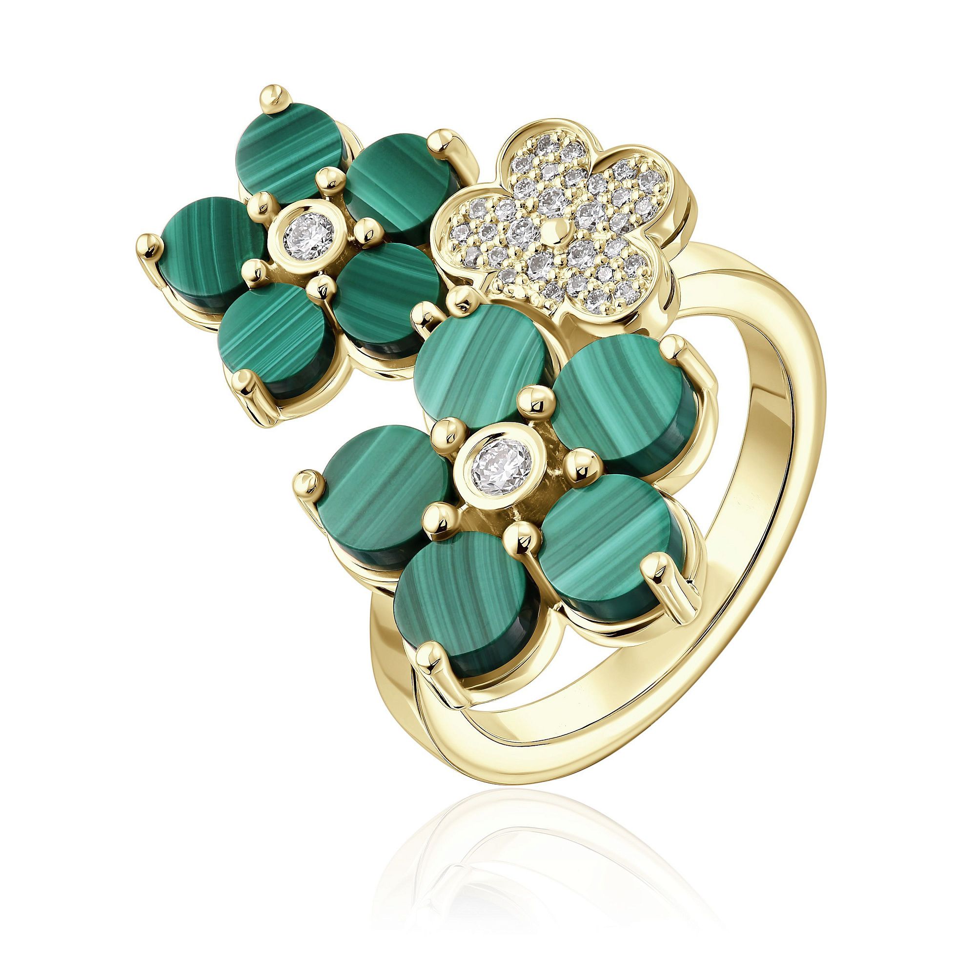 Кольцо из желтого золота с малахитом и бриллиантами