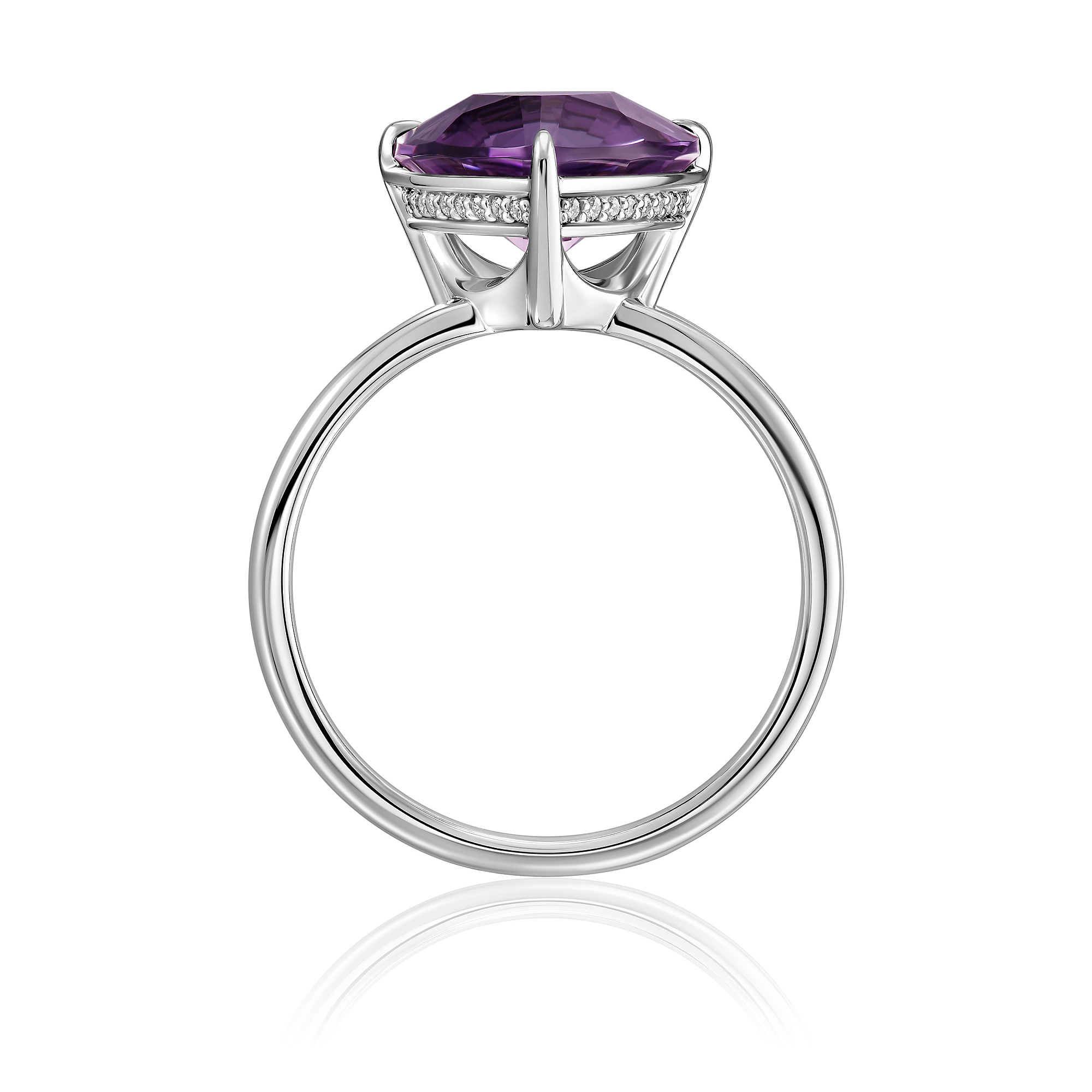 Кольцо из белого золота с аметистом и бриллиантами
