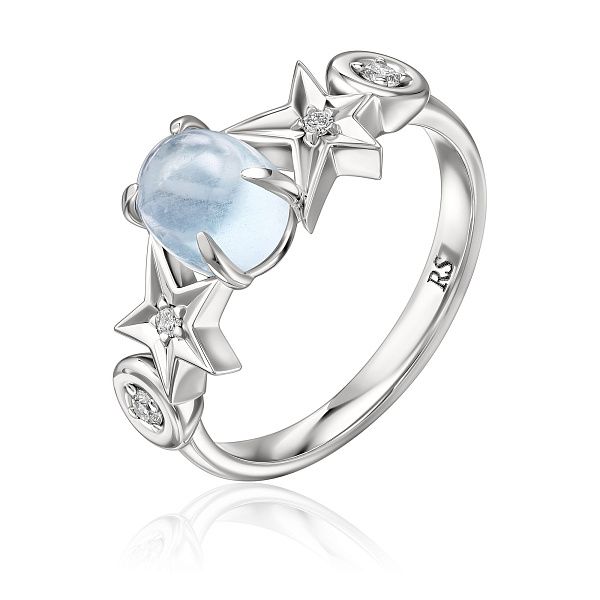Кольцо из белого золота с аквамарином 1.74 ct и бриллиантами