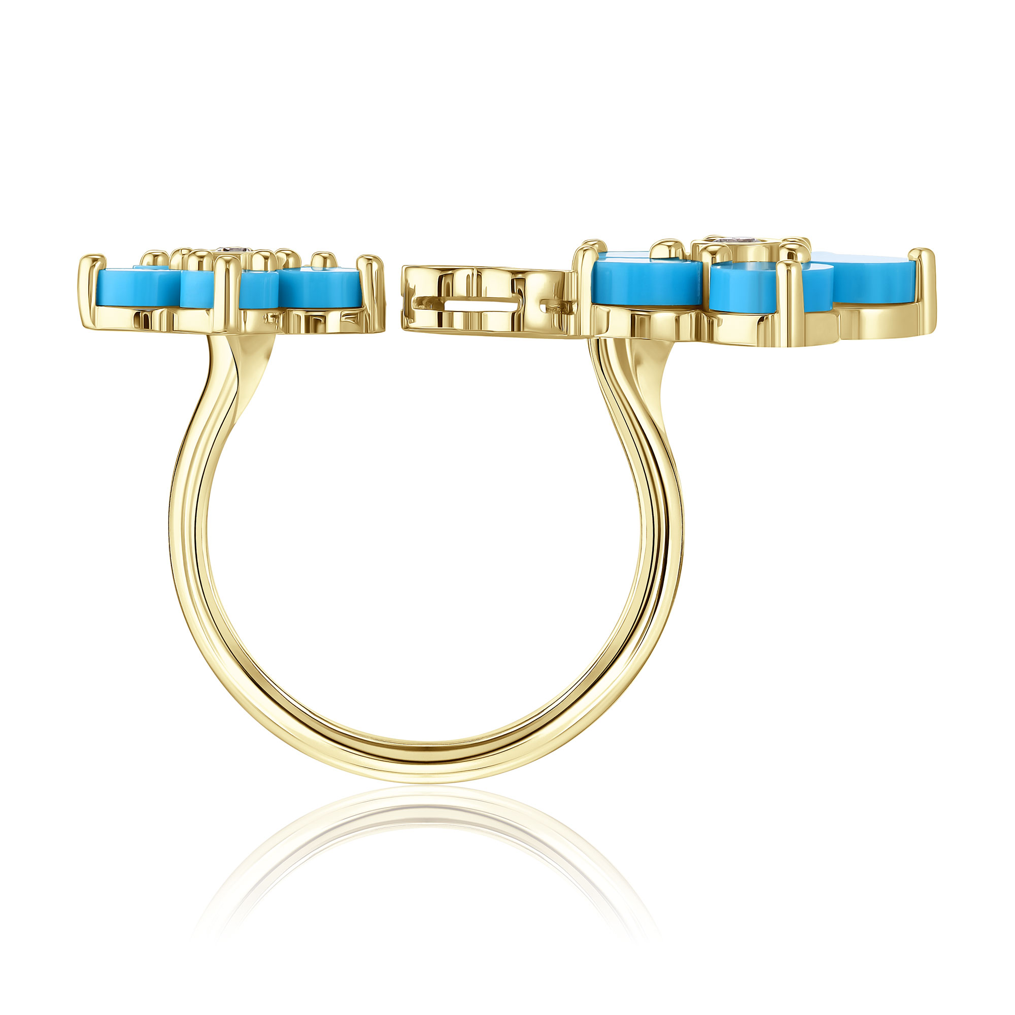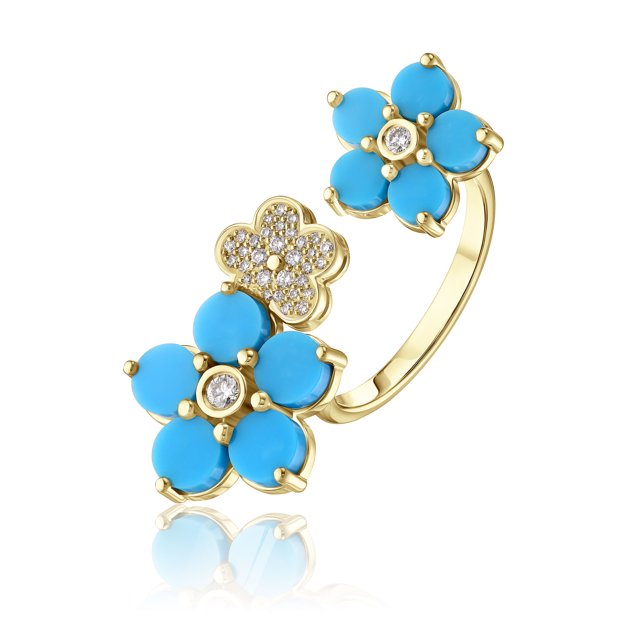 Кольцо из желтого золота с бирюзой и бриллиантами