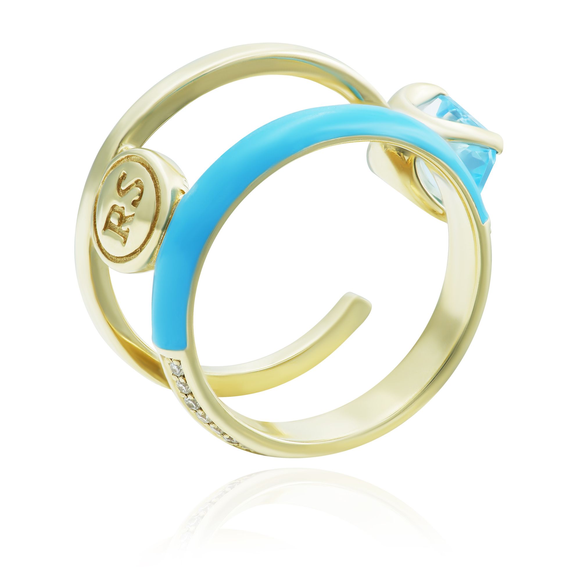 Кольцо из желтого золота с топазом и бриллиантами