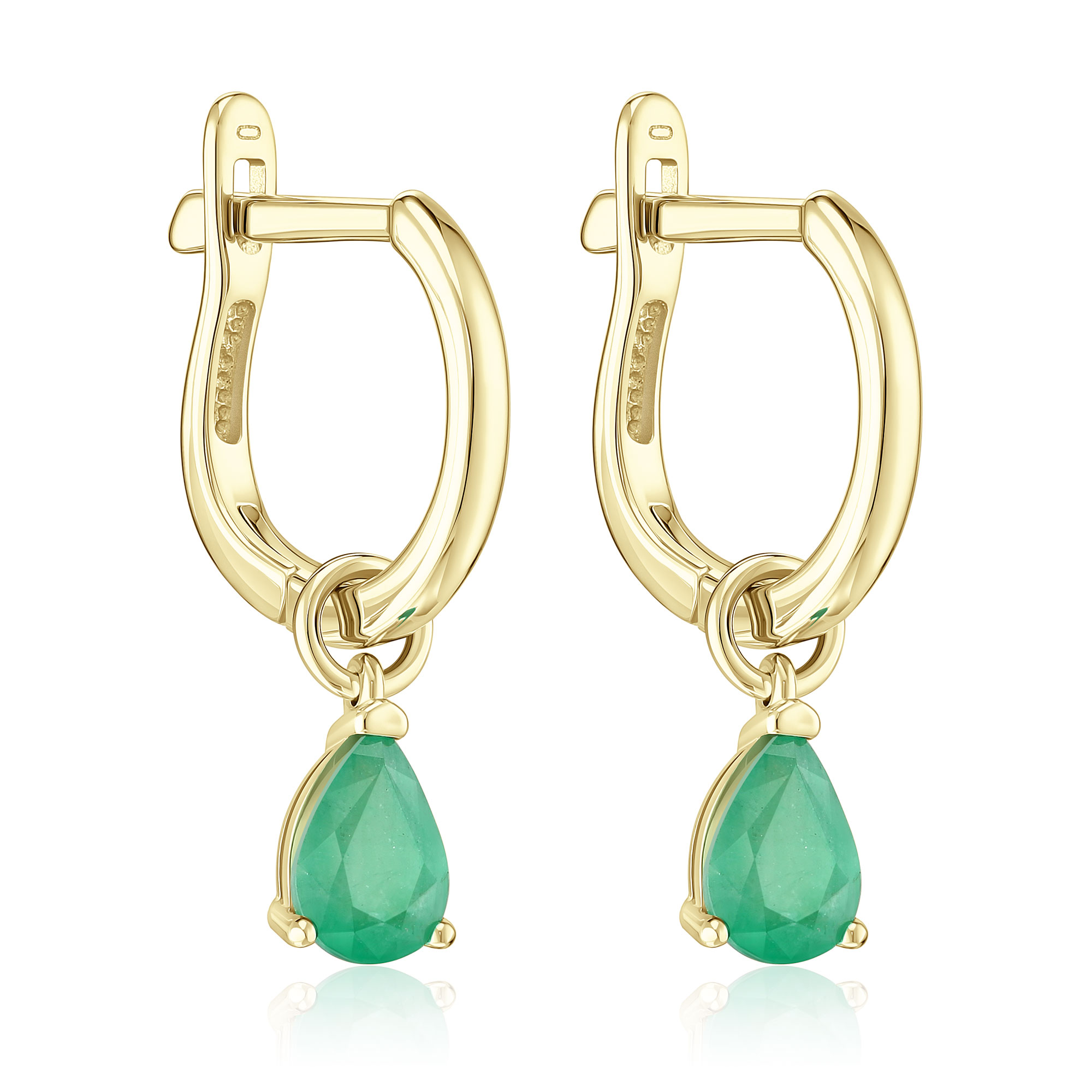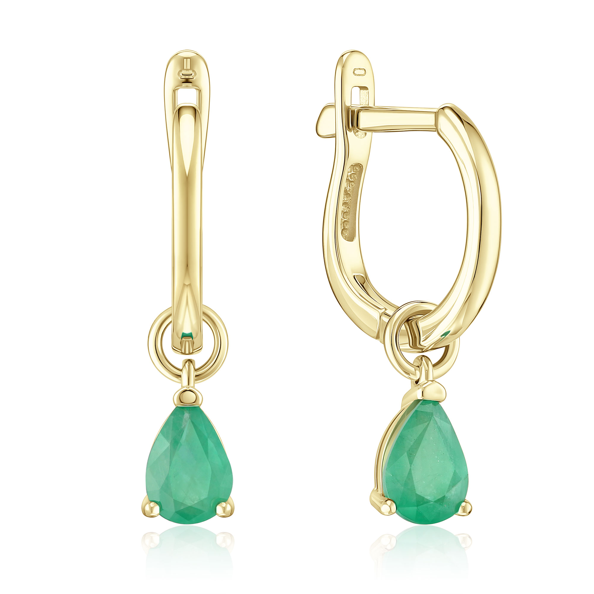 Серьги из желтого золота с изумрудами