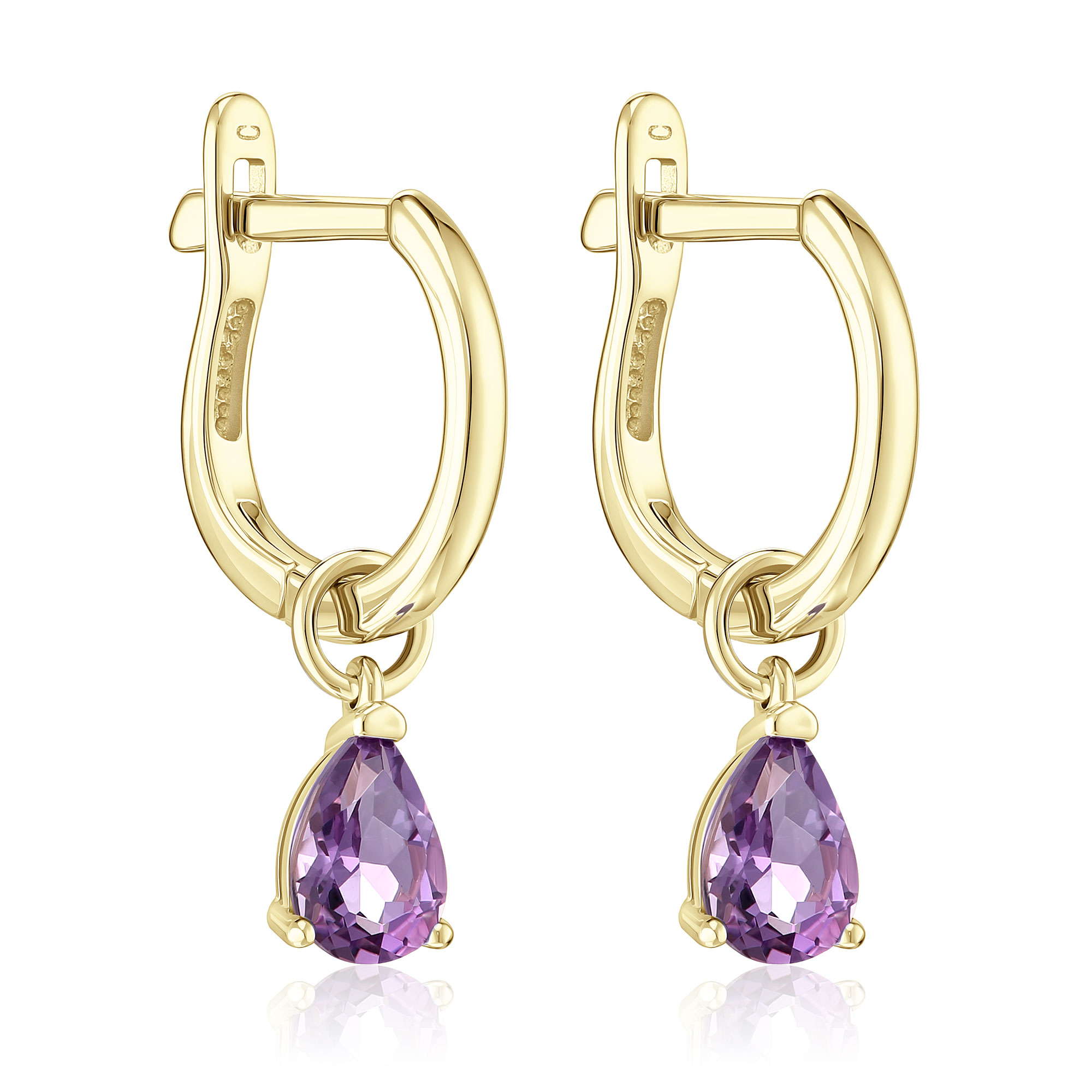 Серьги из желтого золота с аметистами