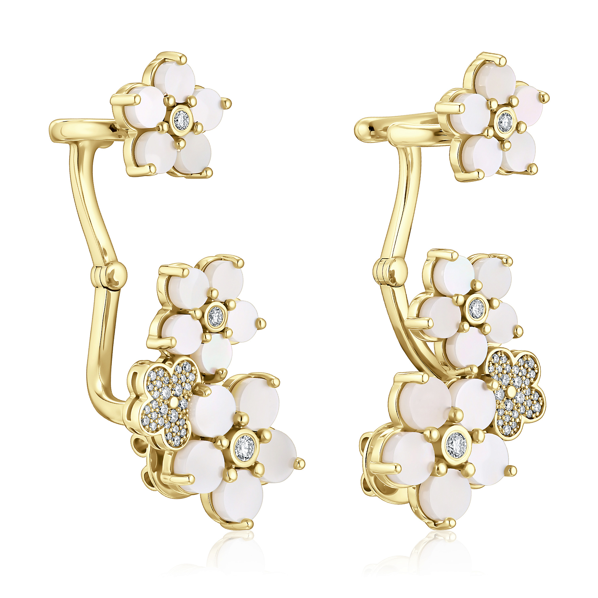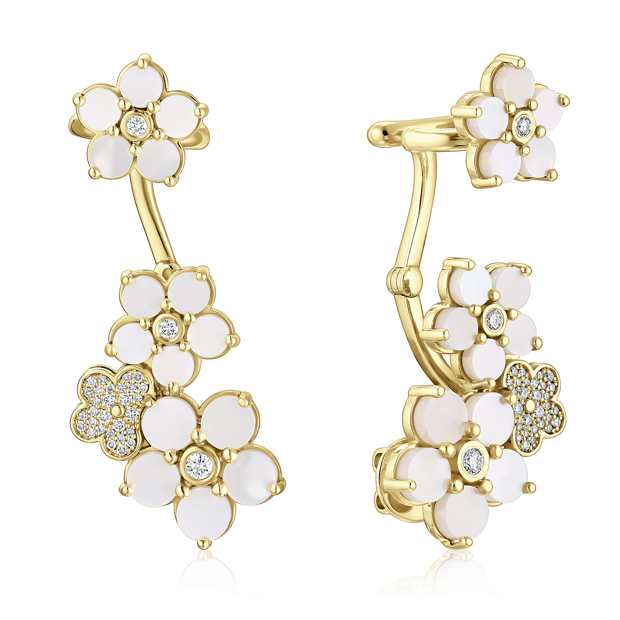 Серьги каффы из желтого золота с перламутром и бриллиантами