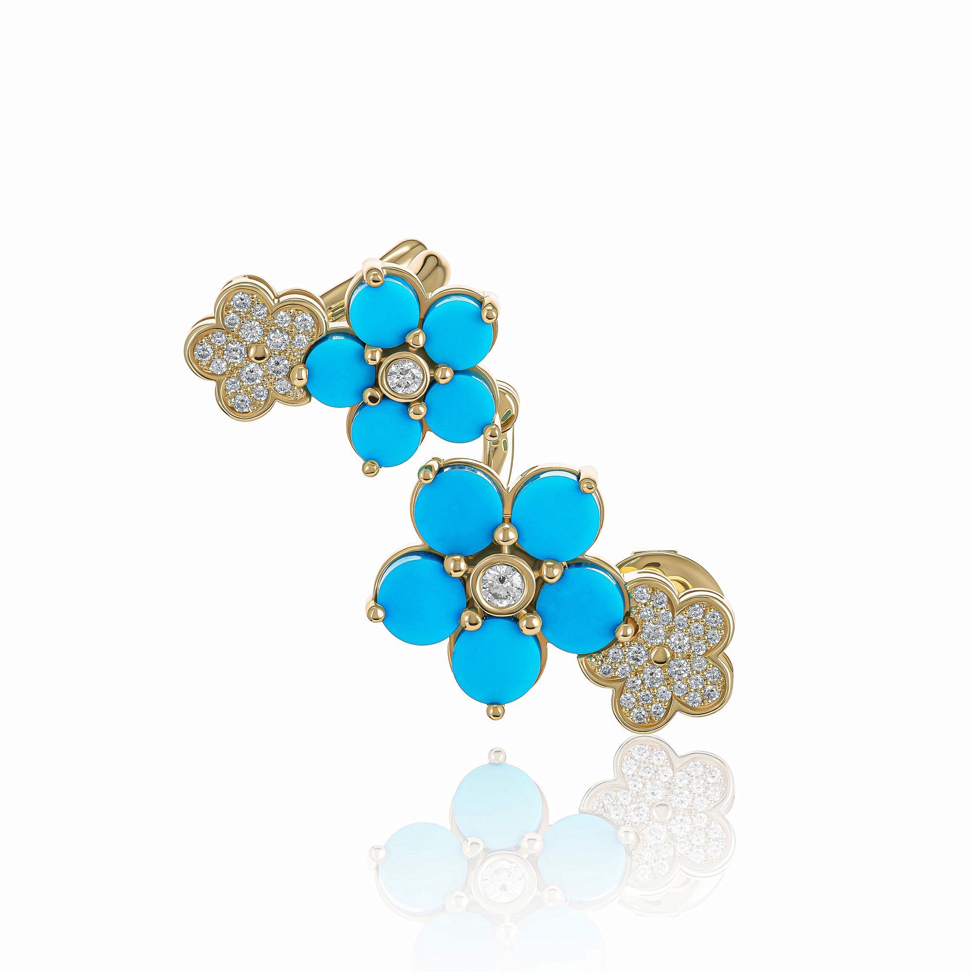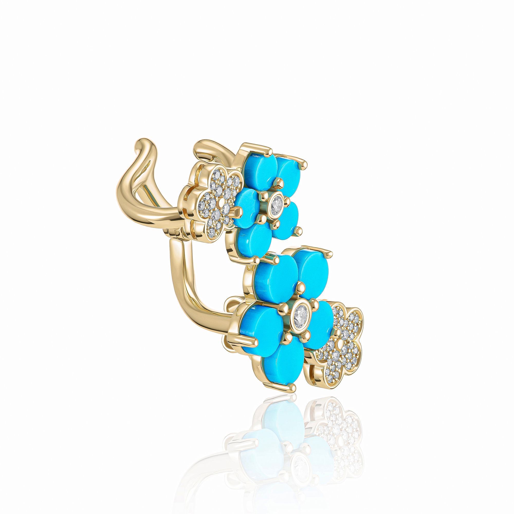 Серьга кафф из желтого золота с бирюзой и бриллиантами