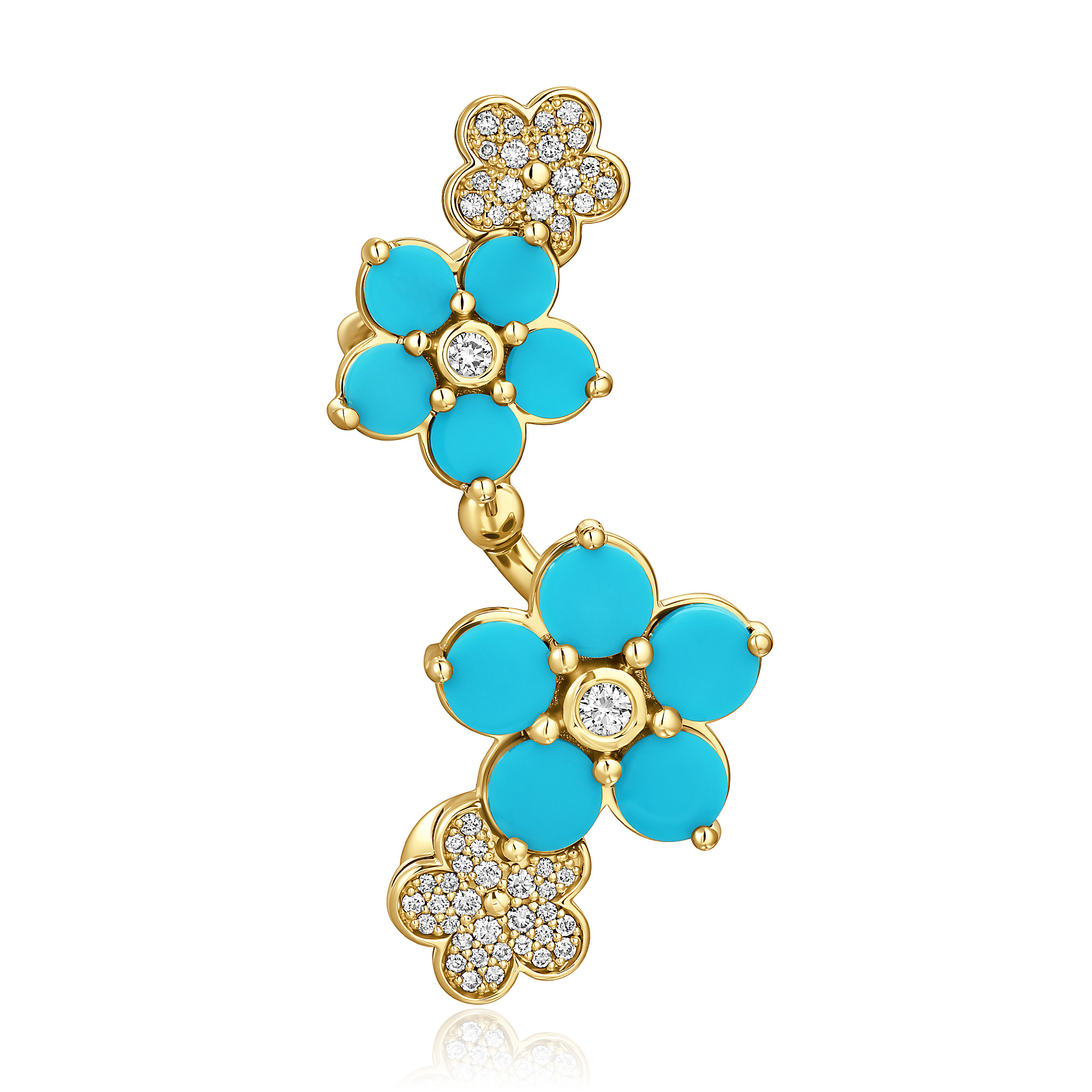 Серьга кафф из желтого золота с бирюзой и бриллиантами