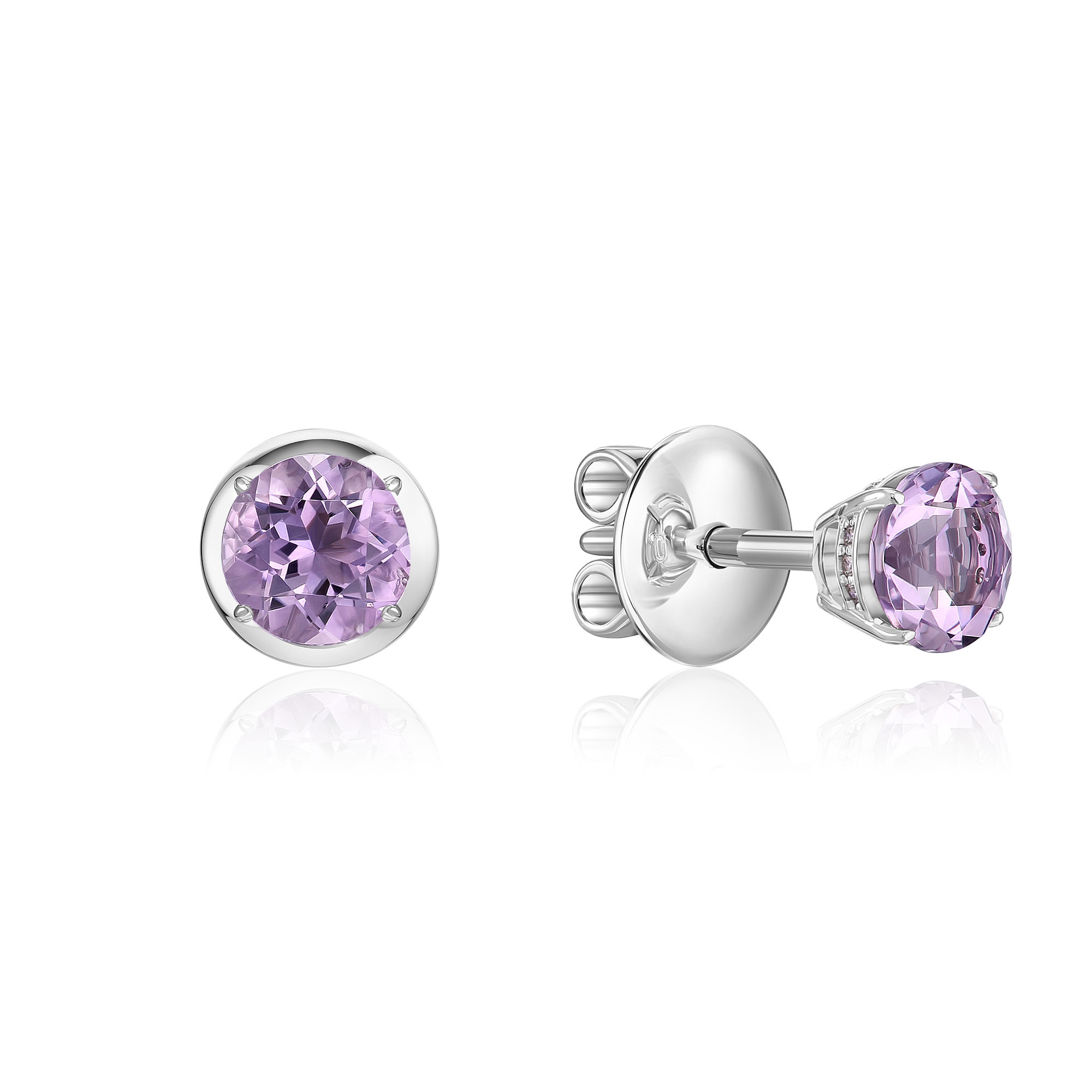 Пусеты из белого золота с аметистами и бриллиантами
