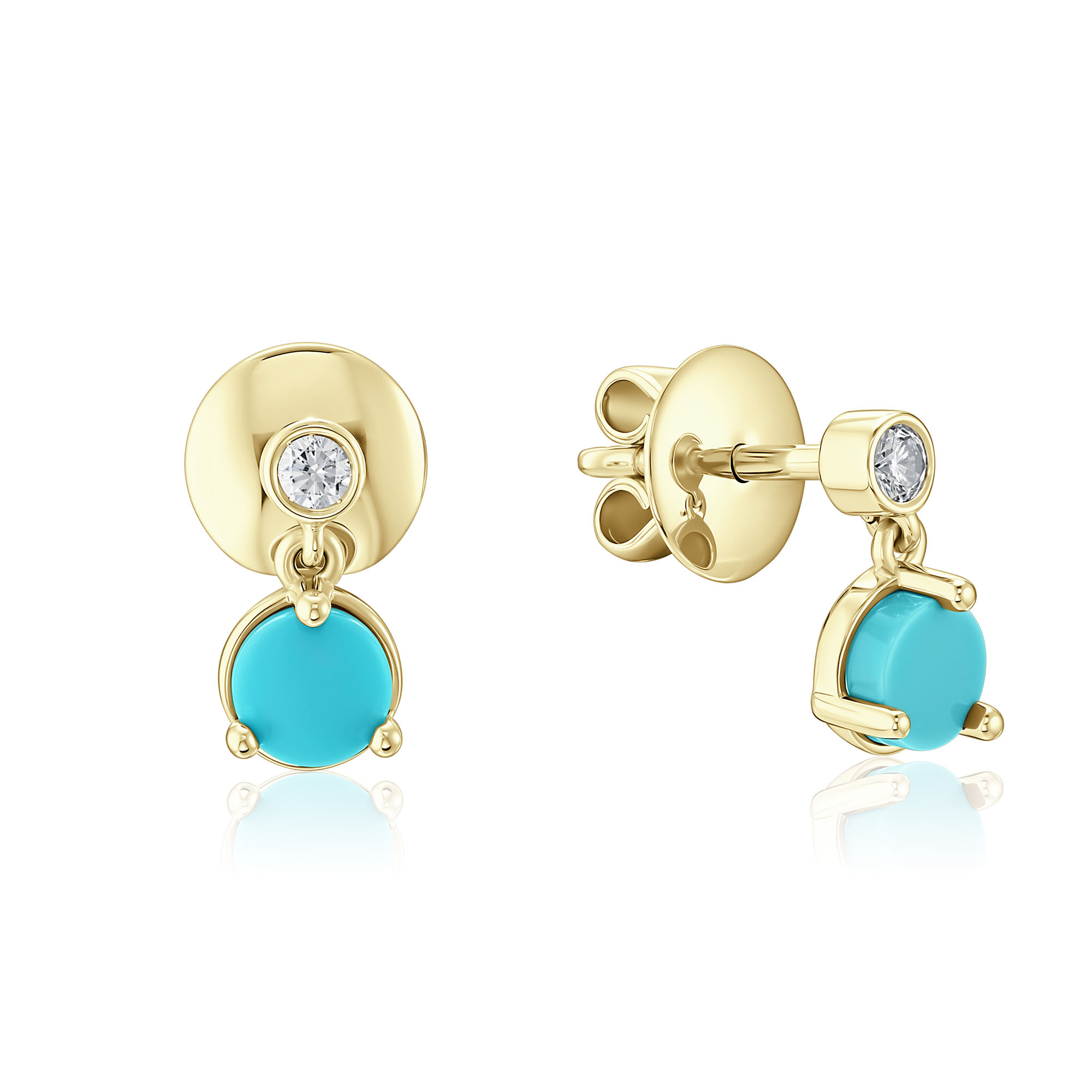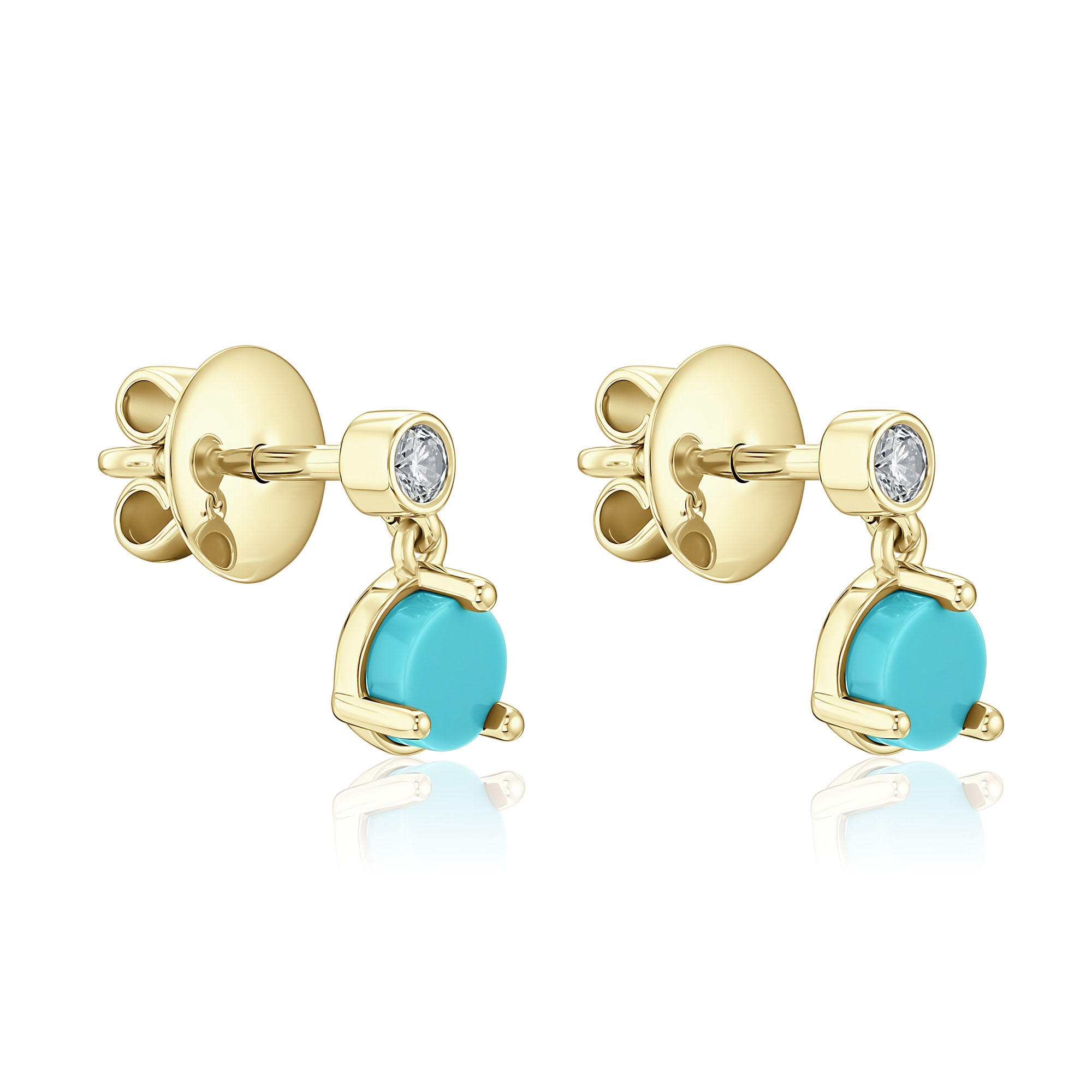 Пусеты из желтого золота с бирюзой и бриллиантами