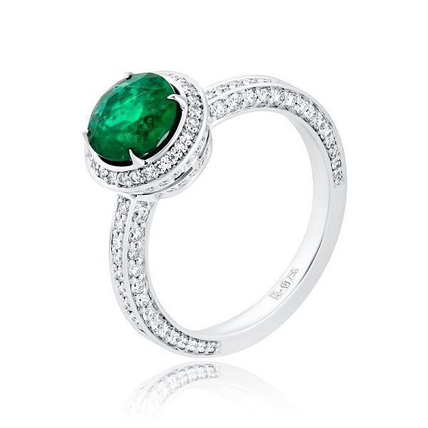 Кольцо из белого золота с изумрудом 1.5 ct и бриллиантами