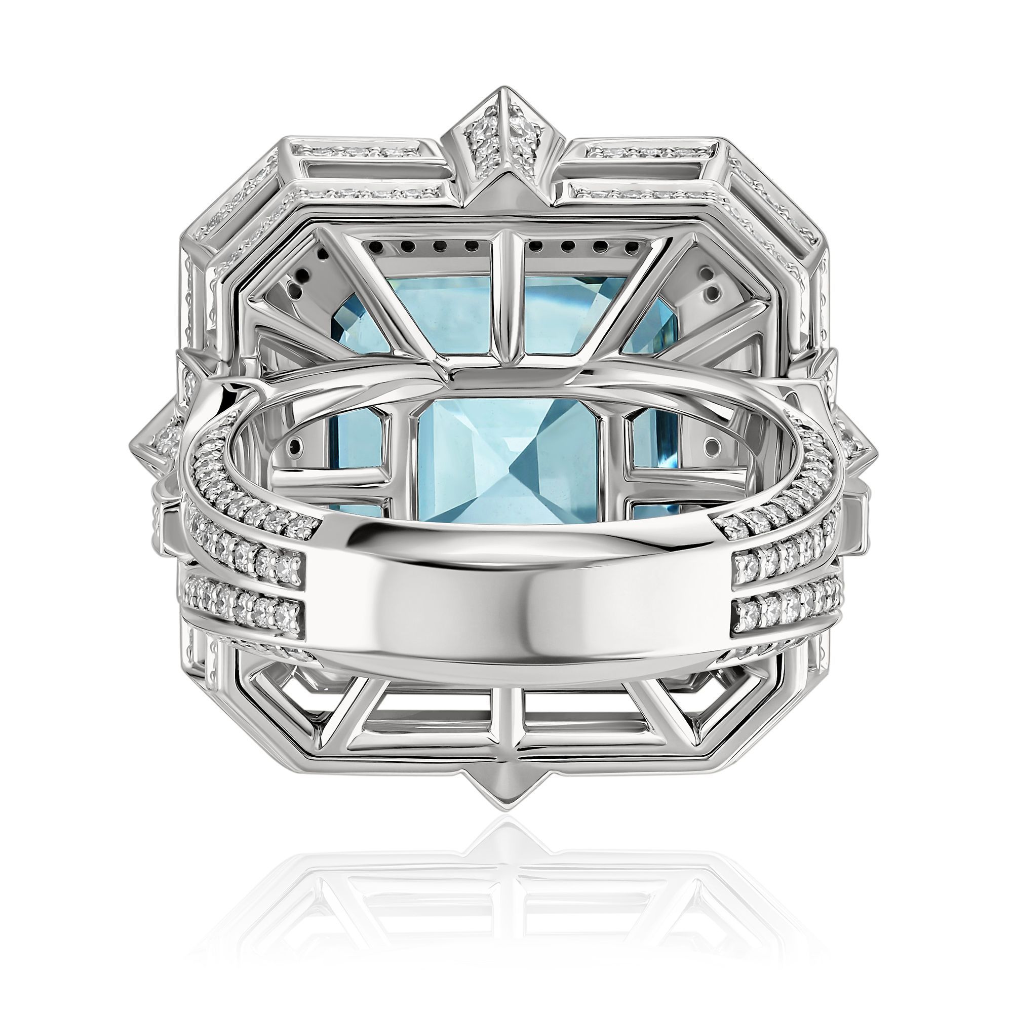 Кольцо из белого золота с бриллиантами и аквамарином 9.76 ct