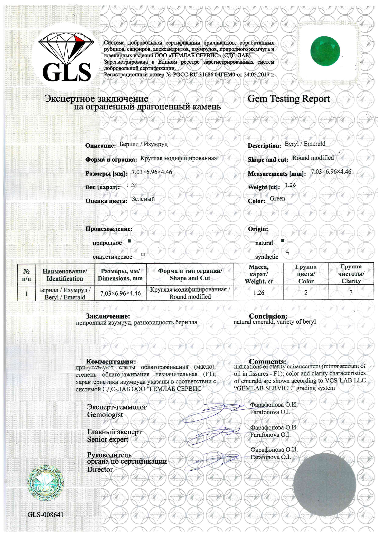 Цвет: 2 , Чистота: 3 Вес: 1.260 ct.