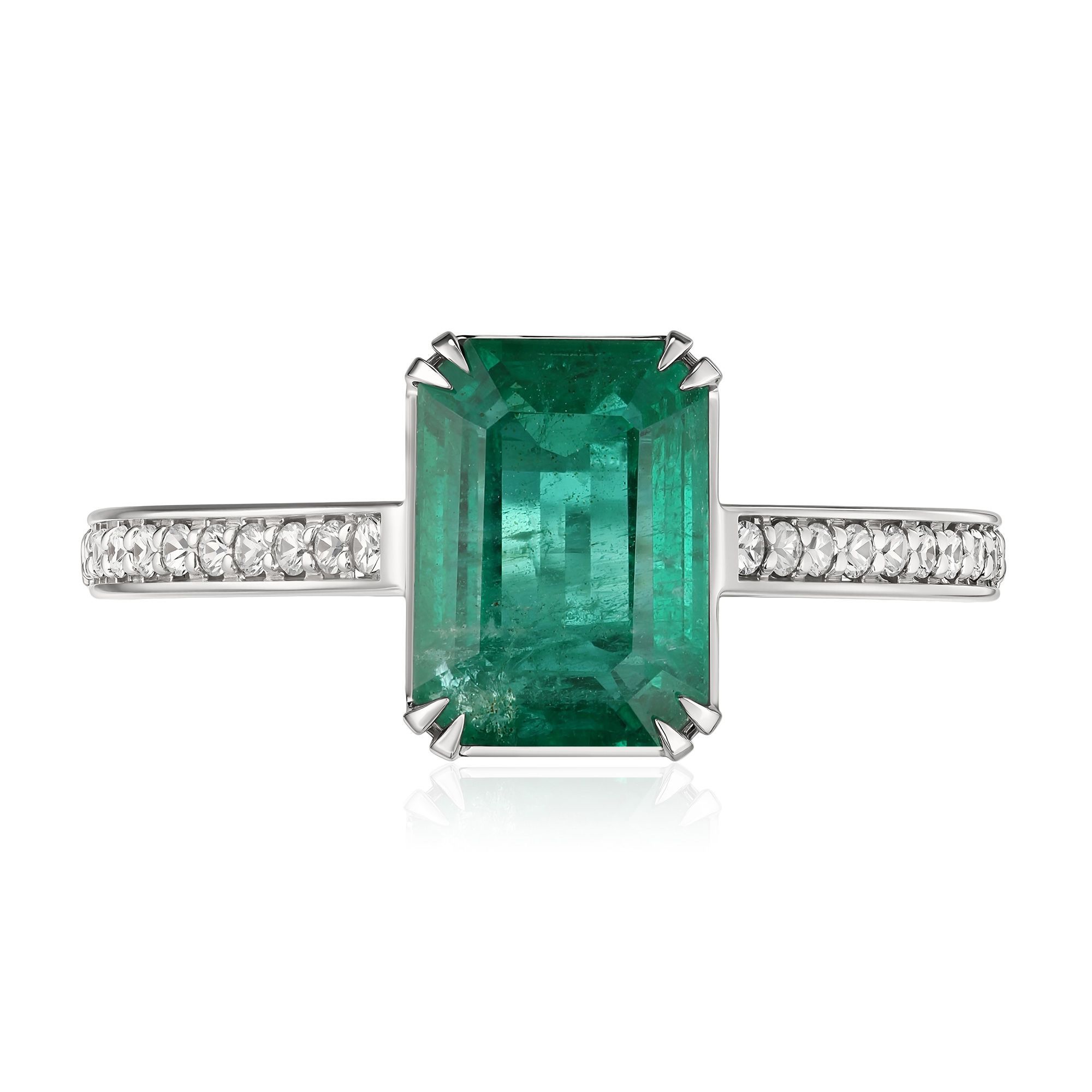 Кольцо из белого золота с бриллиантами и изумрудом 2.62 ct