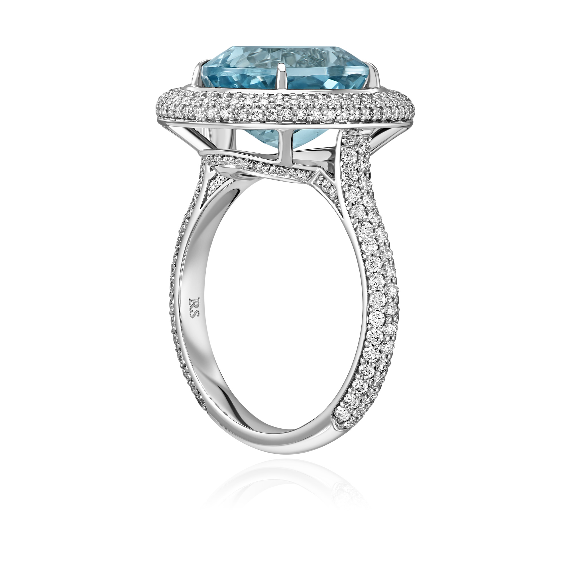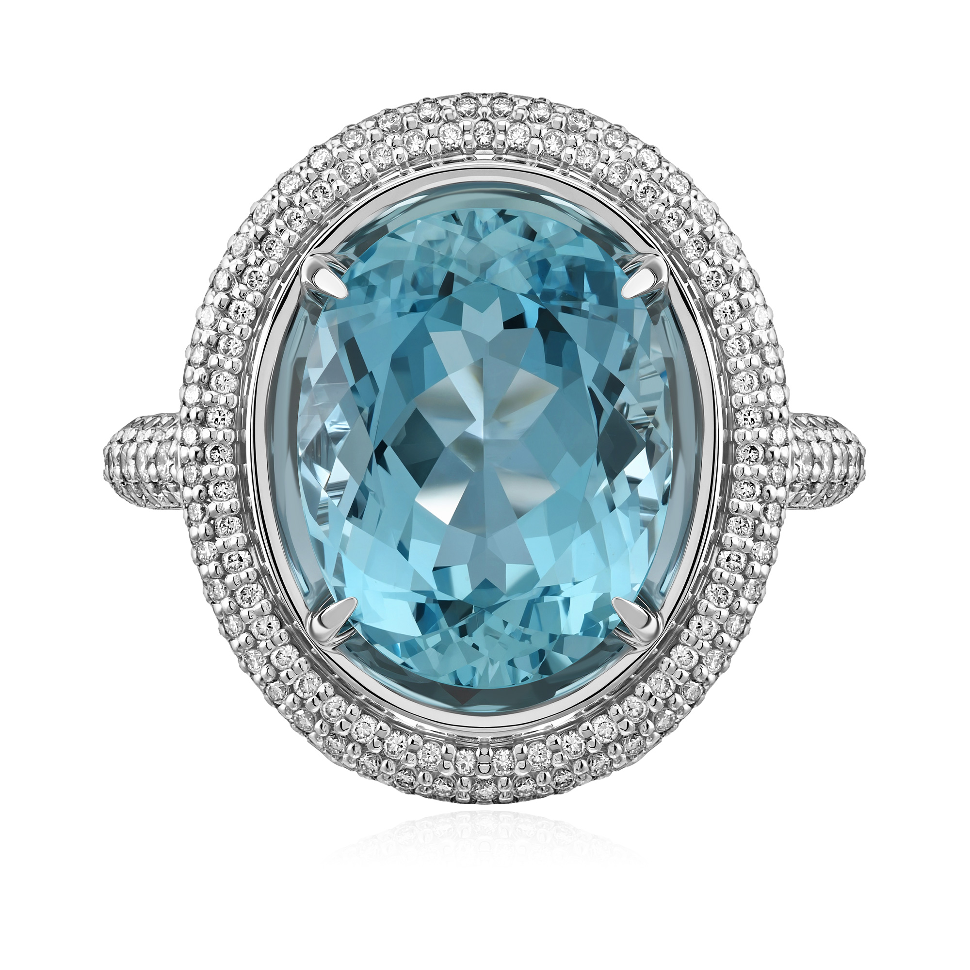 Кольцо из белого золота с бриллиантами и аквамарином 6.42 ct