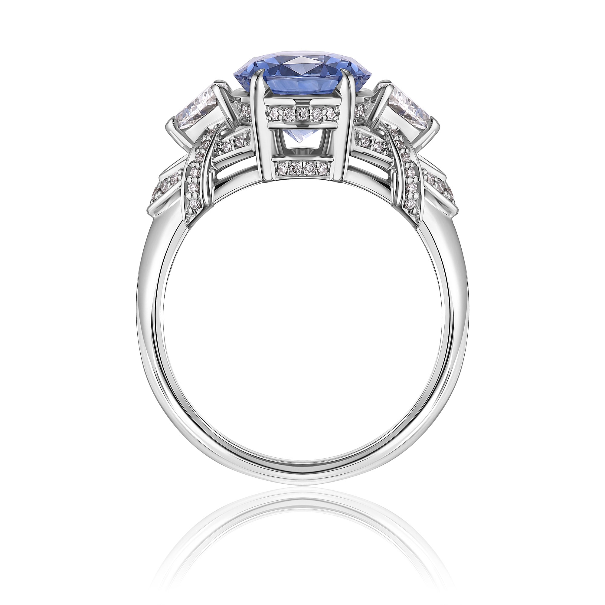 Кольцо из белого золота с бриллиантами и сапфиром 4.08 ct