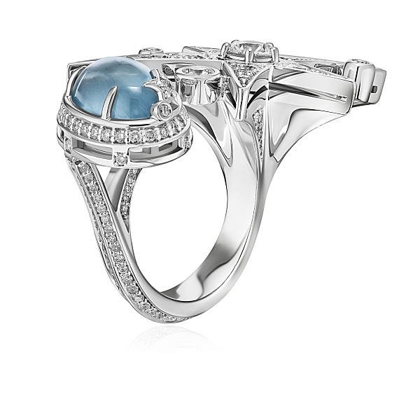 Кольцо из белого золота с аквамарином 5.165 ct и бриллиантами