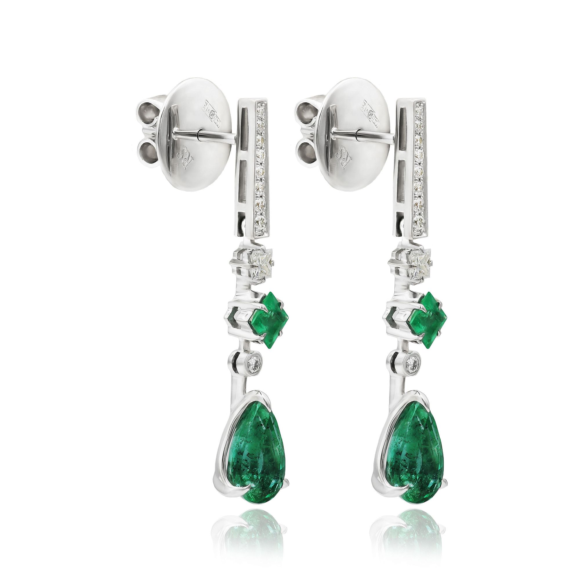 Пусеты из белого золота с изумрудами 2.73 ct и бриллиантами