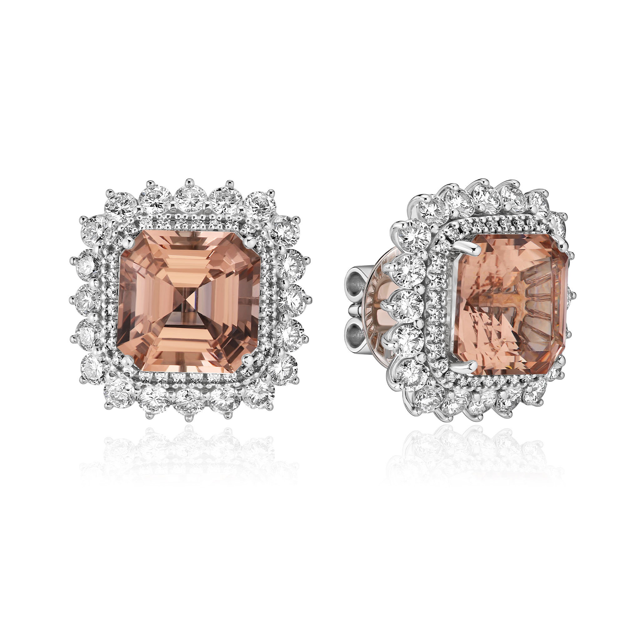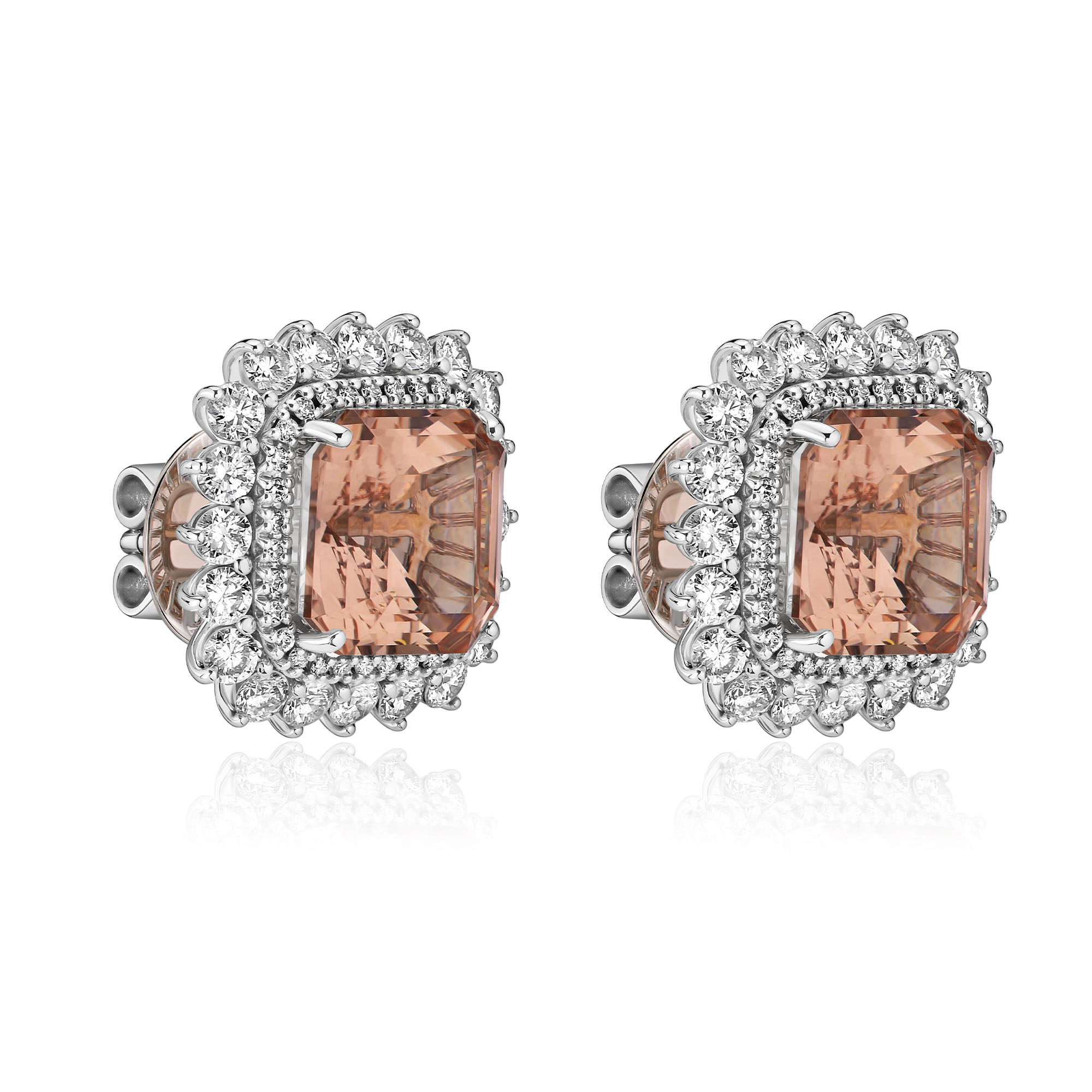 Пусеты из белого золота с бриллиантами и морганитом