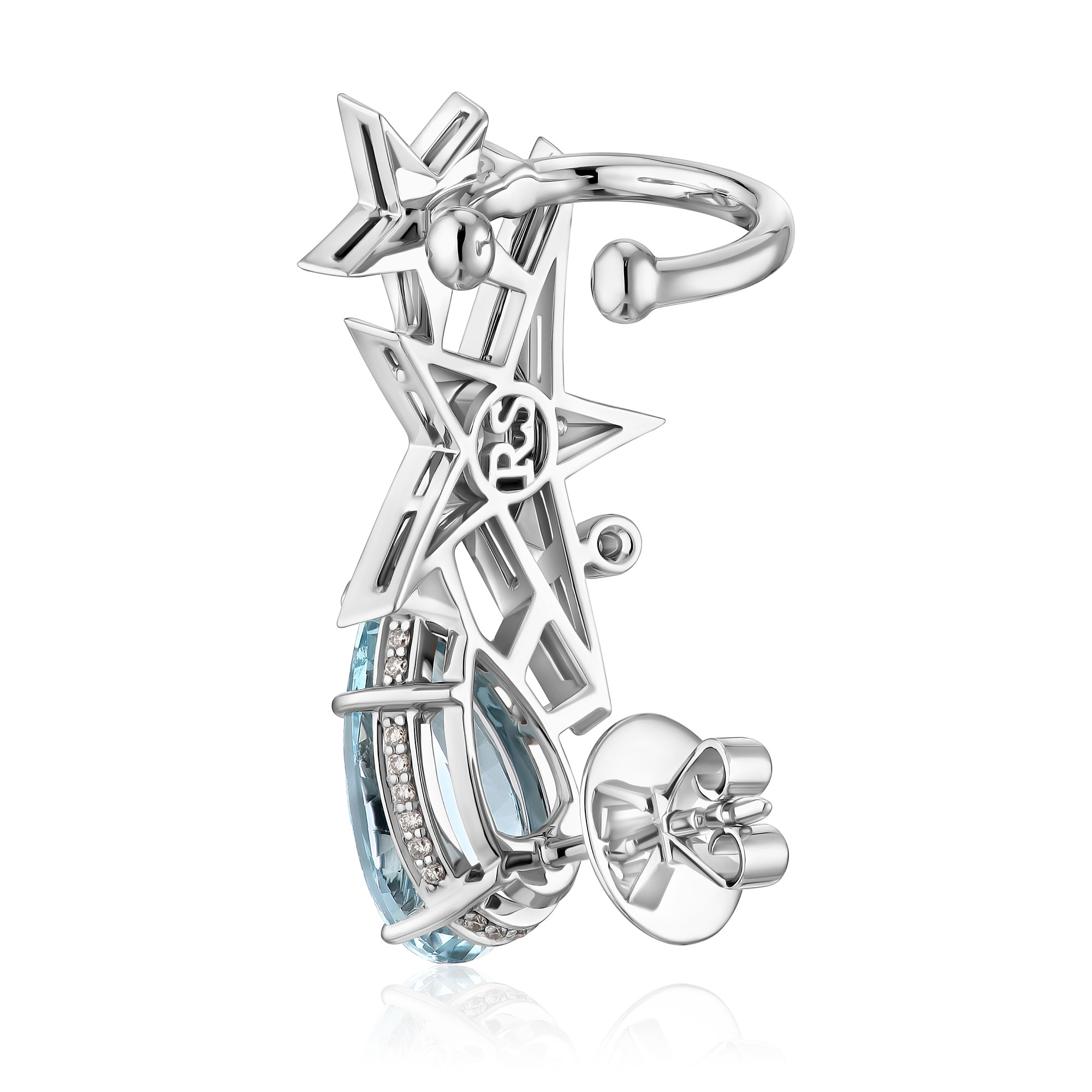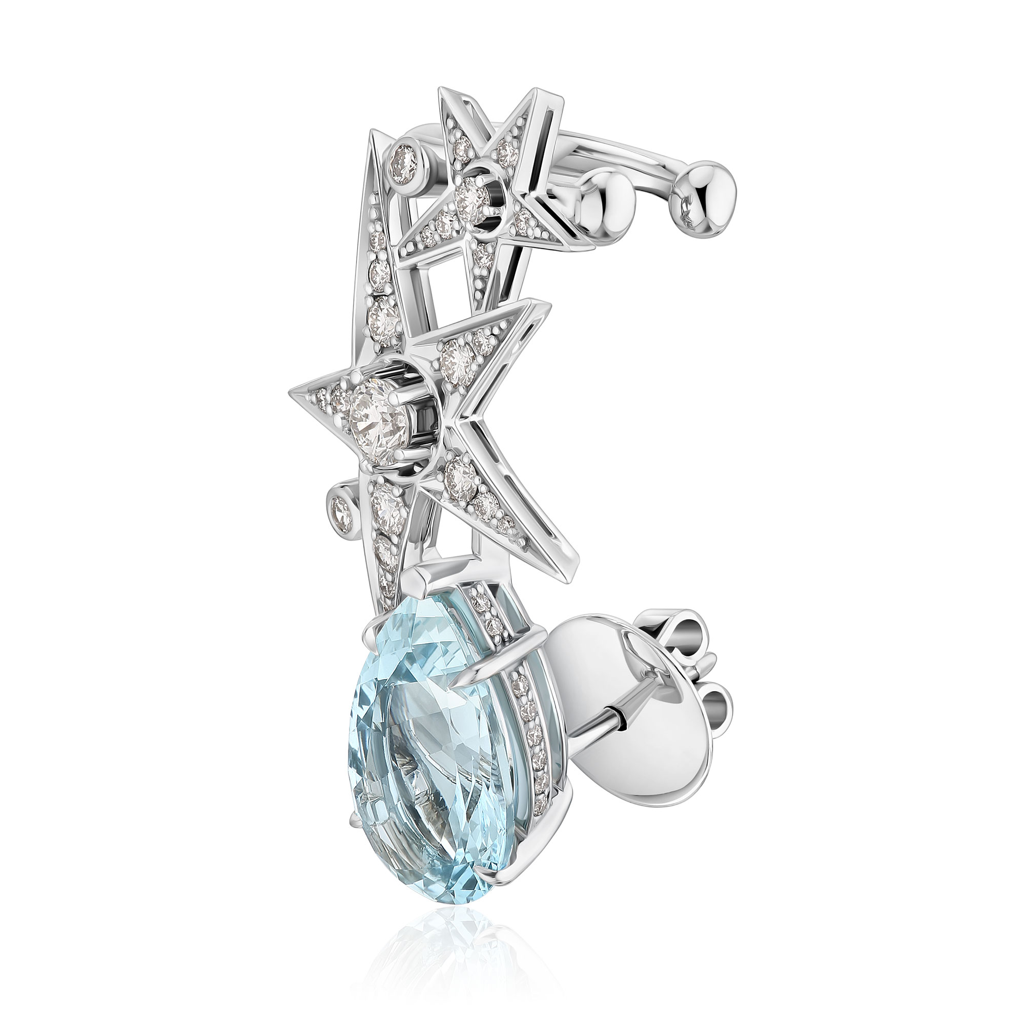 Серьга кафф из белого золота с бриллиантами и аквамарином 3.96 ct